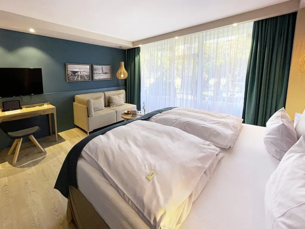Hochwertige Materialien, luxuriöse Betten und traumhafte Aussichten empfangen Sie an einem Ort der Erholung und Entspannung. Der natürlichen Schönheit Usedoms entliehen, bestimmen warme Sand- und Holztöne sowie frische Farbakzente das Ambiente: das Gelb der Sonne, das Orange des Sanddorns und das Blau der Ostsee. Angekommen in Ihrem Heimathafen am Meer genießen Sie persönlichen und liebevollen Service.