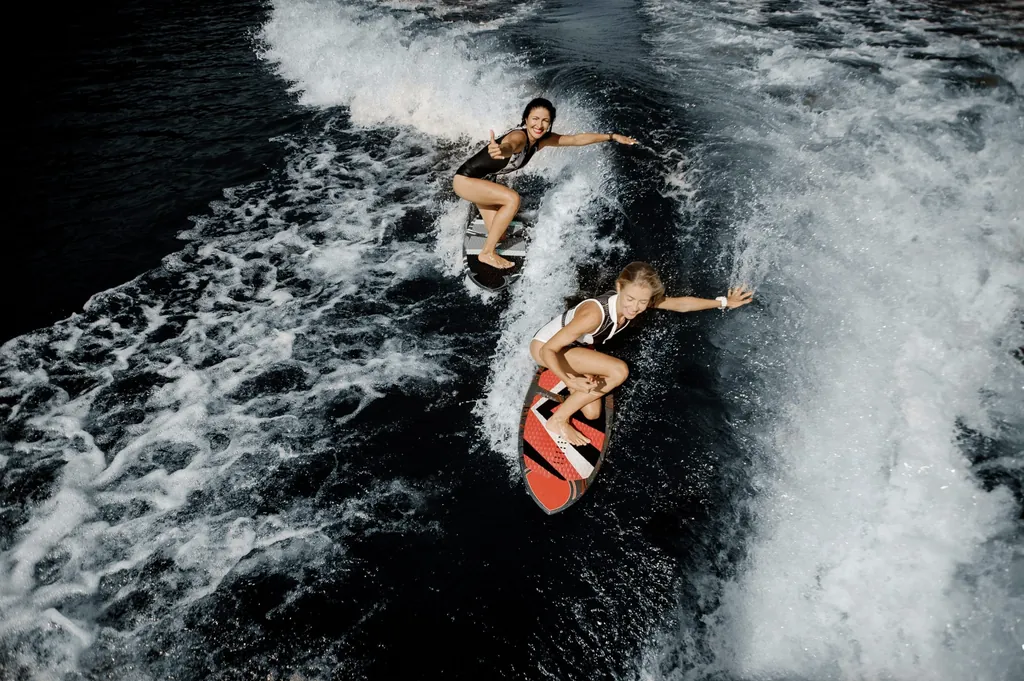 Bei den Wasserskiern handelt es sich um zwei schmale Skier, die vorn gebogen sind und auf der Wasseroberfläche schwimmen. Sie sind über eine Bindung mit den Füßen des Fahrers verbunden. Für die Geschwindigkeit wird der Fahrer von einer Leine gezogen, die entweder an einem Boot oder einer automatischen Anlage befestigt ist. Es ist sinnvoll, einen Neoprenanzug, eine Schwimmweste und einen Helm zu tragen. Der Start bei diesem Adventure Sport erfolgt für den Fahrer meist vom Land aus. Hier wird er über eine Rampe direkt ins Wasser geschleppt. Eine andere Möglichkeit ist der Start direkt aus dem Wasser, der jedoch etwas anspruchsvoller ist. In beiden Fällen nimmt der Fahrer eine gehockte Haltung ein. Beim Start aus dem Wasser müssen die Skispitzen möglichst nach oben zeigen. Beim Start ist es wichtig, dass beide Arme, mit denen der Fahrer sich am Zugseil hält, ganz durchgestreckt sind. Beim Fahren wird eine stehende Position eingenommen.