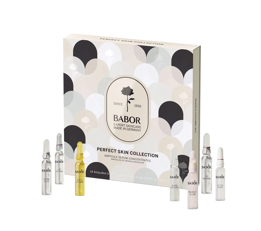 Ein perfekter Teint in nur 14 Tagen! Gönnen Sie sich mit den luxuriösen Produkten von BABOR ein unvergleichliches Selfcare-Erlebnis. Die Perfect Skin Collection-Sets enthalten jeweils 14 ikonische Wirkstoffampullen, die Ihre Haut mit Feuchtigkeit versorgen, sie straffen und ihr einen frischen Glow verleihen.