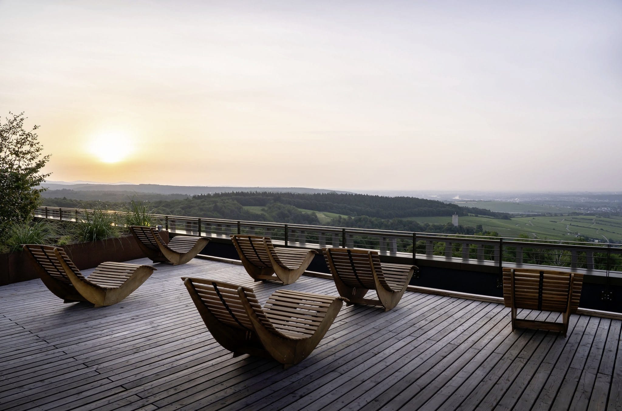 Zudem stehen ein abschließbarer Fahrradkeller, eine Waschstation, vier E-Bikes sowie vier E-Mountainbikes zur Verfügung. Neben Wandern und Wald-Yoga setzt das Lifestyle-Hotel auch auf Genuss – mit dem Restaurant „Wald.Fein“ und einem großen Rooftop, auf dem sich Saunen und die Bar „Wald.Tropfen“ mit Weitblick über den Rheingau befinden.
