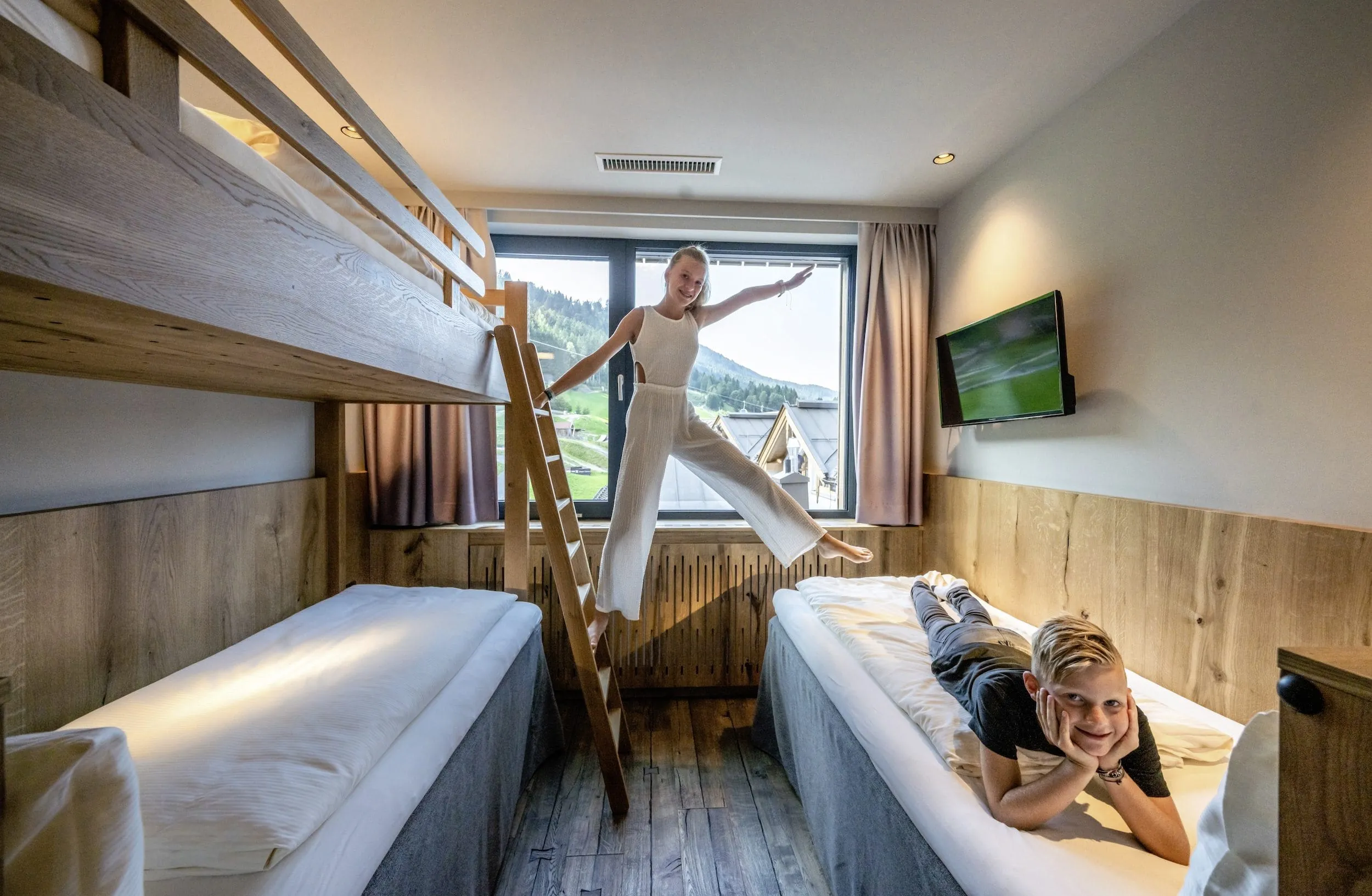 Ein lässiges Vier-Sterne-Retreat mit der Atmosphäre einer Berghütte bietet Gastgeberfamilie Schwarzmann Familien in Schröcken: Appartements und Studios in Design-Ambiente mit Kinderzimmern und sogar einem Infinitybett für sechs Kinder. Das topmoderne und unkomplizierte Familienhotel setzt auf Kreativität, Naturerlebnis und nachhaltige Erholung. Entsprechend lässig ist das Jugendprogramm auf 1.200 Metern: Erlebnistouren zum Canyoning, Wildwasserschwimmen, Flying Fox, Klettersteig und Abenteuerpark – immer in Begleitung hauseigener Guides oder lokaler Experten für Action-Bergabenteuer.