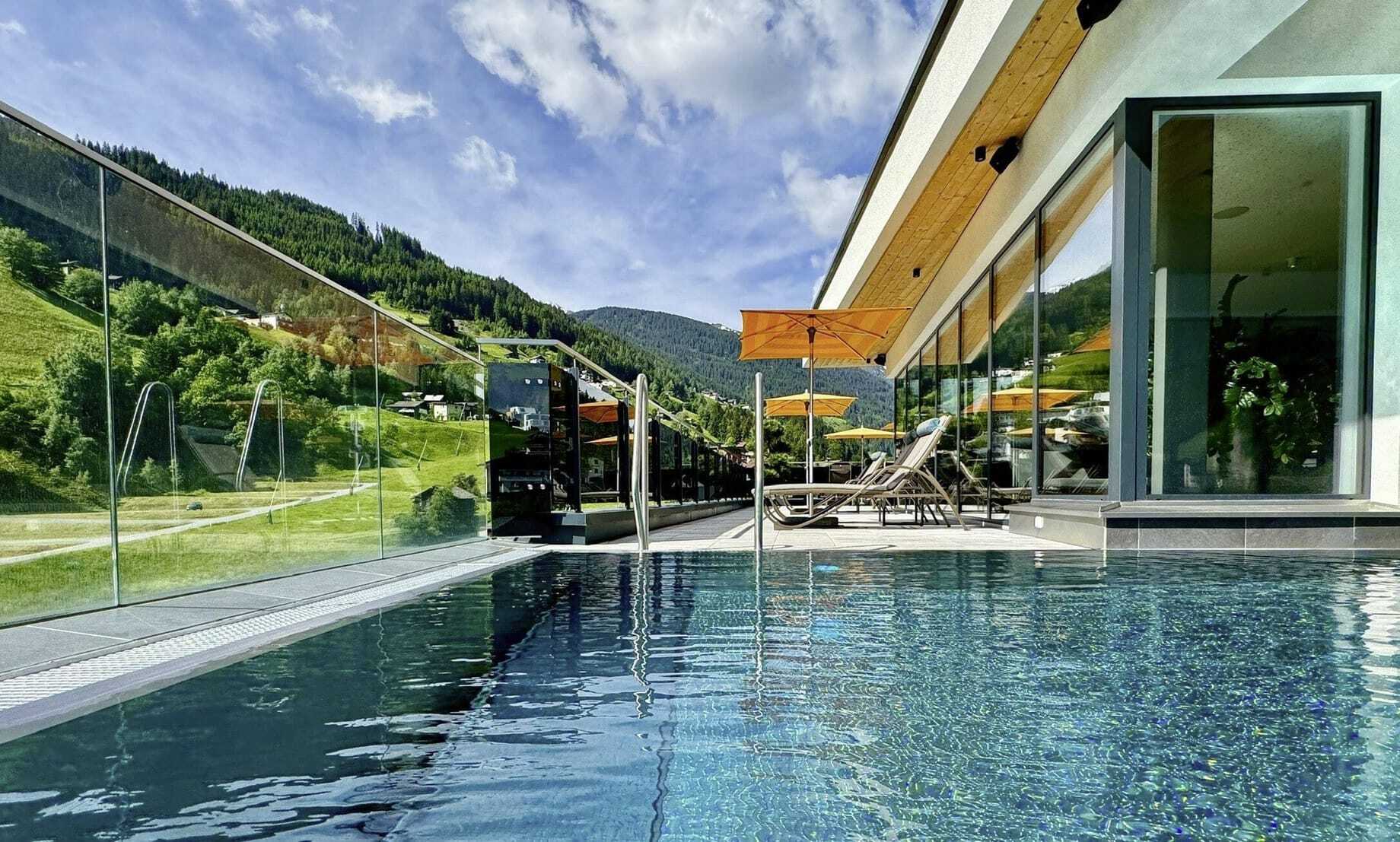 Um sich selbst zu regenerieren, warten im erstem Vier-Sterne-Superior-Hotel von See ein Fitnessraum und ein Wellnessbereich mit Pool- und Saunawelten, sowohl für Familien als auch Adults only. Diese erstrecken sich über zwei Etagen, inklusive Infinity-Outdoorpool auf dem Rooftop und unverbautem Blick auf die Silvretta-Gebirgskette. Und der nächste Wow-Moment wartet schon im eleganten Ambiente im Erdgeschoss: das abendliche Fünf-Gänge-Gourmetdinner.