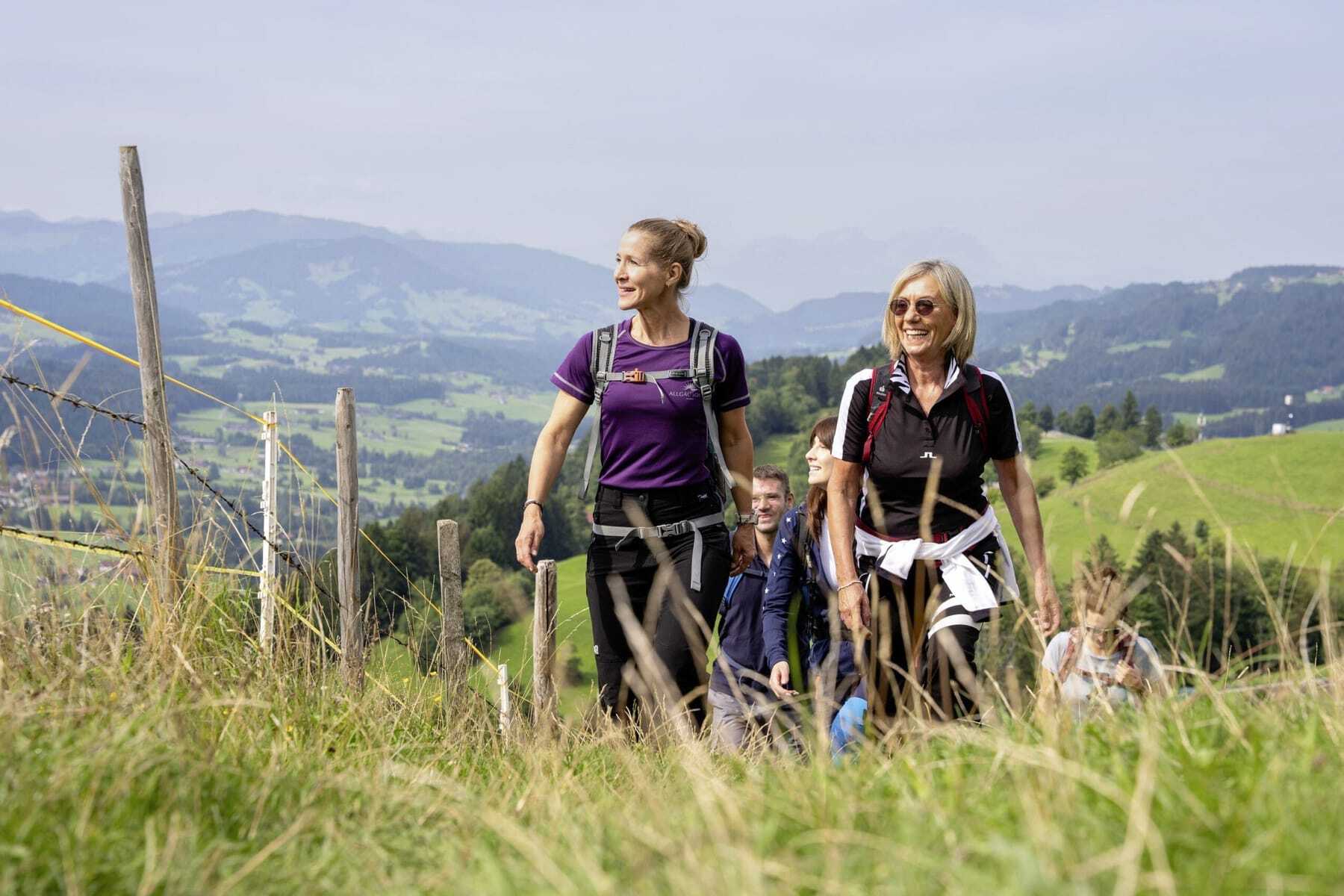 Am Abend gönne ich mir ein paar Bahnen im Außenpool des 2.100 Quadratmeter-Wellnessbereichs , bevor der Tag im »Stießbergstüble« ausklingt. Live-Musik, ein Glas Wein, Gespräche mit neuen Bekannten. Draußen leuchtet der Hochgrat im Abendrot – dieselbe Kulisse, die mich am Morgen begrüßt hat. Und ich merke: Dieser Ort vereint, was sich selten findet – Bewegung und Begegnung, Kraft und Ruhe.