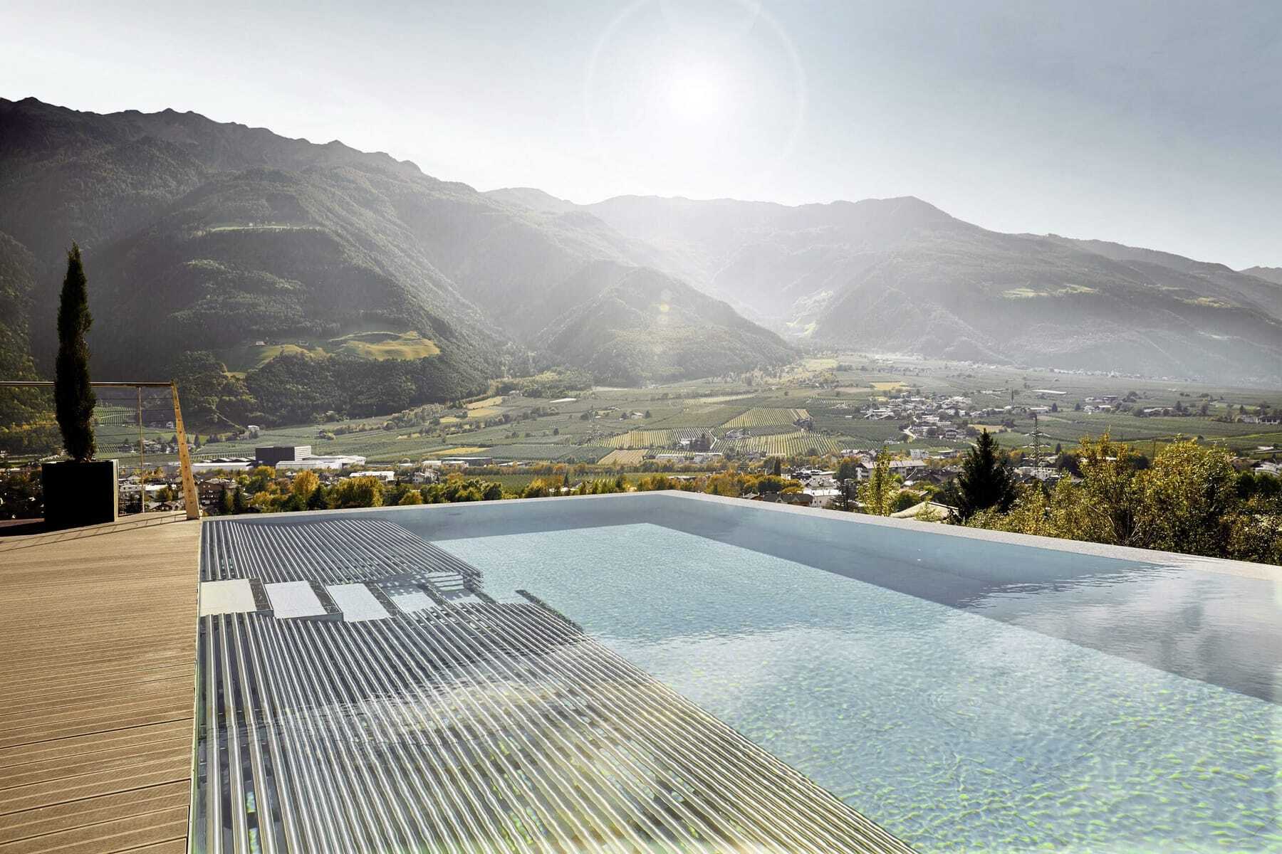 Ausgepowert und mit vielen bleibenden Eindrücken im Kopf, denke ich noch nicht an das köstliche Genussmenü mit den Südtiroler Spezialitäten am Abend, sondern möchte dem Körper mit dem immensen Erholungsangebot auf 5.500 Quadratmetern (14 Pools, acht verschiedenen Saunen und etlichen Ruhebereiche) etwas Gutes tun. Ich entscheide mich für den Sole-Outdoorpool und relaxe anschließend in einem der gemütlichen Daybeds auf dem Dach – dem Himmel ganz nah!