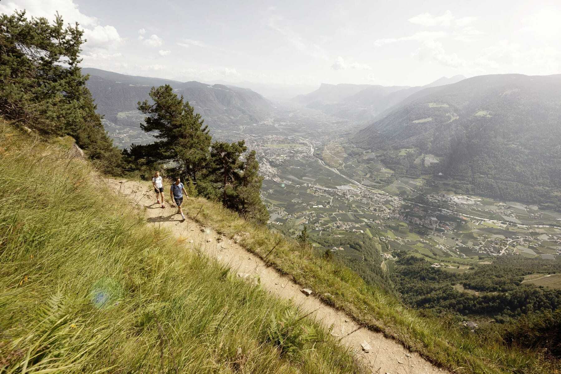 Immer an der Etsch entlang führt der Radweg bis nach Meran – mit Blick auf den Meraner Talkessel und Schloss Tirol – durch die imposante Altstadt. Eine echte Genusstour! Ein Highlight für ambitioniertere Biker ist die Bike Highline Meran: beschilderte Mountainbike-Touren lenken auf einen Höhenweg von Alm zu Alm, mit dem Vigiljoch als geografischem Höhepunkt. Klingt verlockend? Ist aber noch längst nicht alles, denn das Adults only-Preidlhof Luxury DolceVita Resort bietet eines der vielfältigtsten Aktiv- und Wellness-Angebote in Südtirol. Geführte Wander- und (E-)Biketouren mehrmals wöchentlich sowie Ausflüge gehören zum Programm, wahlweise ausgerichtet auf Genuss oder sportlichen Anspruch, auf Profis oder Einsteiger. So wird beispielsweise auf einem speziellen Testgelände ein Bike-Techniktraining offeriert. Ich schließe mich am nächsten Tag einer der geführten Wanderungen an – die langjährigen Wanderführer des Preidlhof kennen die Region wie ihre Westentasche und können so manche Geschichte erzählen. Einfach atemberaubend, wenn der Nebel sich am Morgen aus dem Vinschger Tal verzieht und die Hänge in warmes Licht taucht!