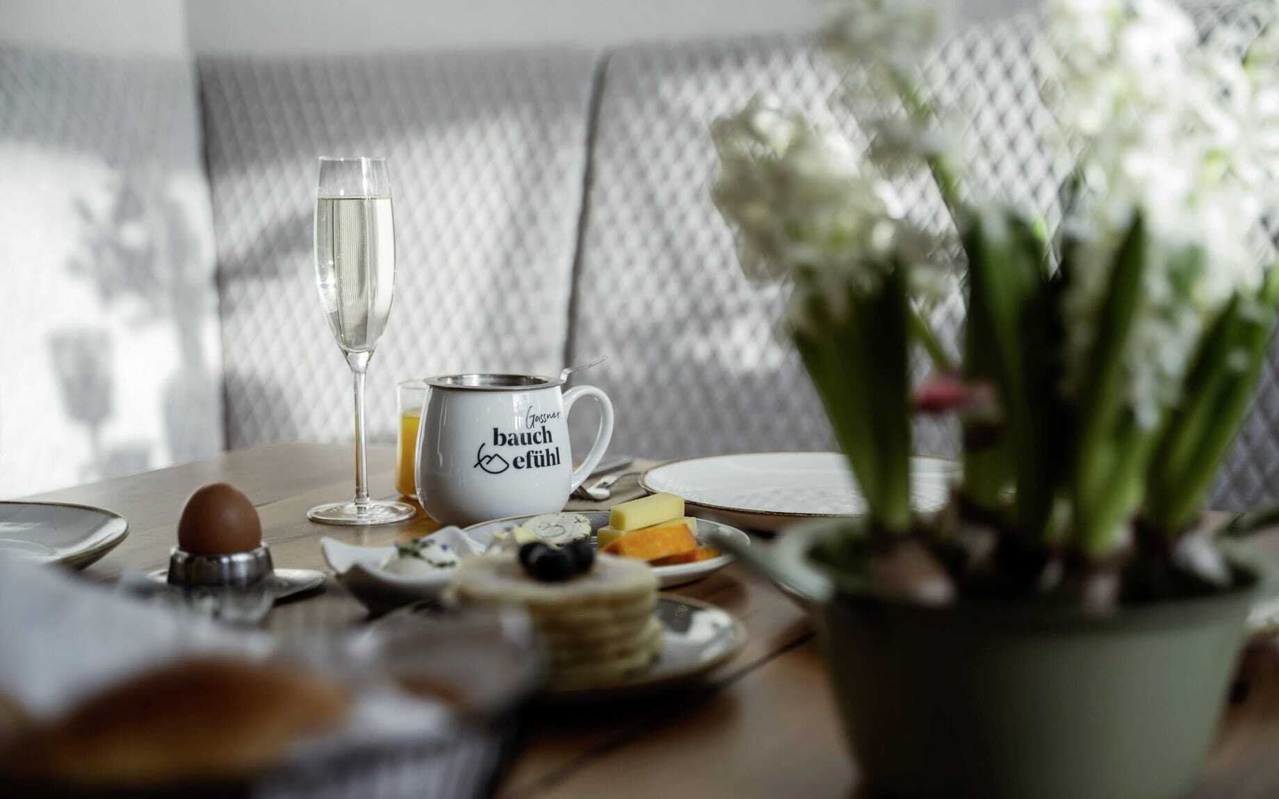 Mein Lieblingsplatz nach dem Foiskarsee im Obersulzbachtal ist die Ruheinsel im Naturpool – mit Bergblick. Sie befindet sich im unteren Teil des Hotelgartens vor der Adults only-Saunawelt (zusätzlich gibt es auch eine Familien-Dress on-Sauna im Farblichthallenbad). Während ich die letzten Sonnenstrahlen genieße, schweifen meine Gedanken zum Abendmenü. Was wird Küchenchef Hans-Peter wohl kredenzen? »Brutal regional« lautet das heutige Motto. Dass großer Wert auf kurze Wege, Qualität und Nachhaltigkeit gelegt wird, zeigt auch diese Kleinigkeit im Bad in meinem Zimmer: Neben zwei festen Pflegebars für Haare und Körper aus hochwertiger Naturkosmetik liegt ein eigens dafür produziertes Stoffsackerl mit dem Hinweis »Nimm mi mid hoam«. Noch so ein Detail, das in Erinnerung bleibt.