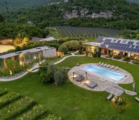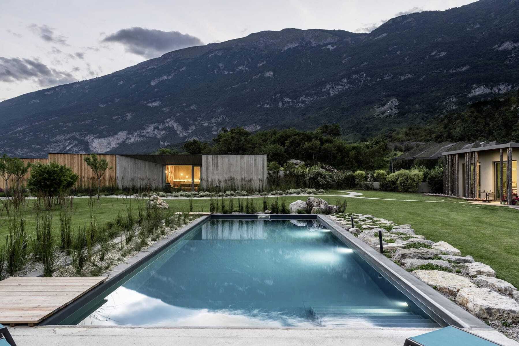 Ursprünglich als Privathaus mit sechs Zimmern erbaut, haben die Spagnollis schnell erkannt, dass ihr Refugium auch anderen gut gefallen könnte. Sie erweiterten das Haupthaus um zwei Zimmer, platzierten ein Bioschwimmbad im Garten und ließen einen Flachbau aus Holz, Stein und Glas errichten – architekturpreisgekrönt, mit begrüntem Dach und drei modern-minimalistischen Suiten. So entstand ein Ort der Ruhe und Gelassenheit, der zum Lesen oder Yoga im Garten einlädt. Und ein Ort, der aufgrund seiner Lage im Trentino und der Nähe zu den Dolomiten fürs Aktiv-Sein wie geschaffen ist.