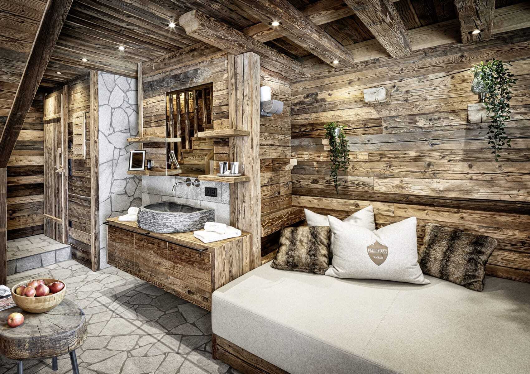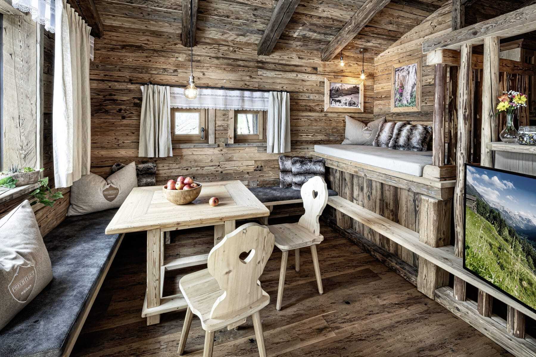 Heute brunchen im Bademantel. Morgen um sieben Uhr frühstücken und rauf auf den Berg. Übermorgen vielleicht eine Massage, Yogastunde oder ein Gesundheitscoaching mit der Chefin? Im Urlaub will ich alles so gestalten, wie es mir gerade Spaß macht. Spontan. Keine Termine, keine Programme, keine festen Essenszeiten. »Das verstehen wir unter wahrem Luxus«, schmunzelt Carina Neumann, studierte Gesundheitspsychologin, die das Prechtlgut zusammen mit ihrem Mann Manuel Aster 2018 eröffnete. Acht Chalets im typischen Almhütten-Stil. Mit echtem, teils 400 Jahre alten Altholz. Naturstein, offenem Holzkamin in der Mitte der großzügigen Wohn-Ess-Küchen-Stube und Häkelgardinen aus Omas Zeiten.