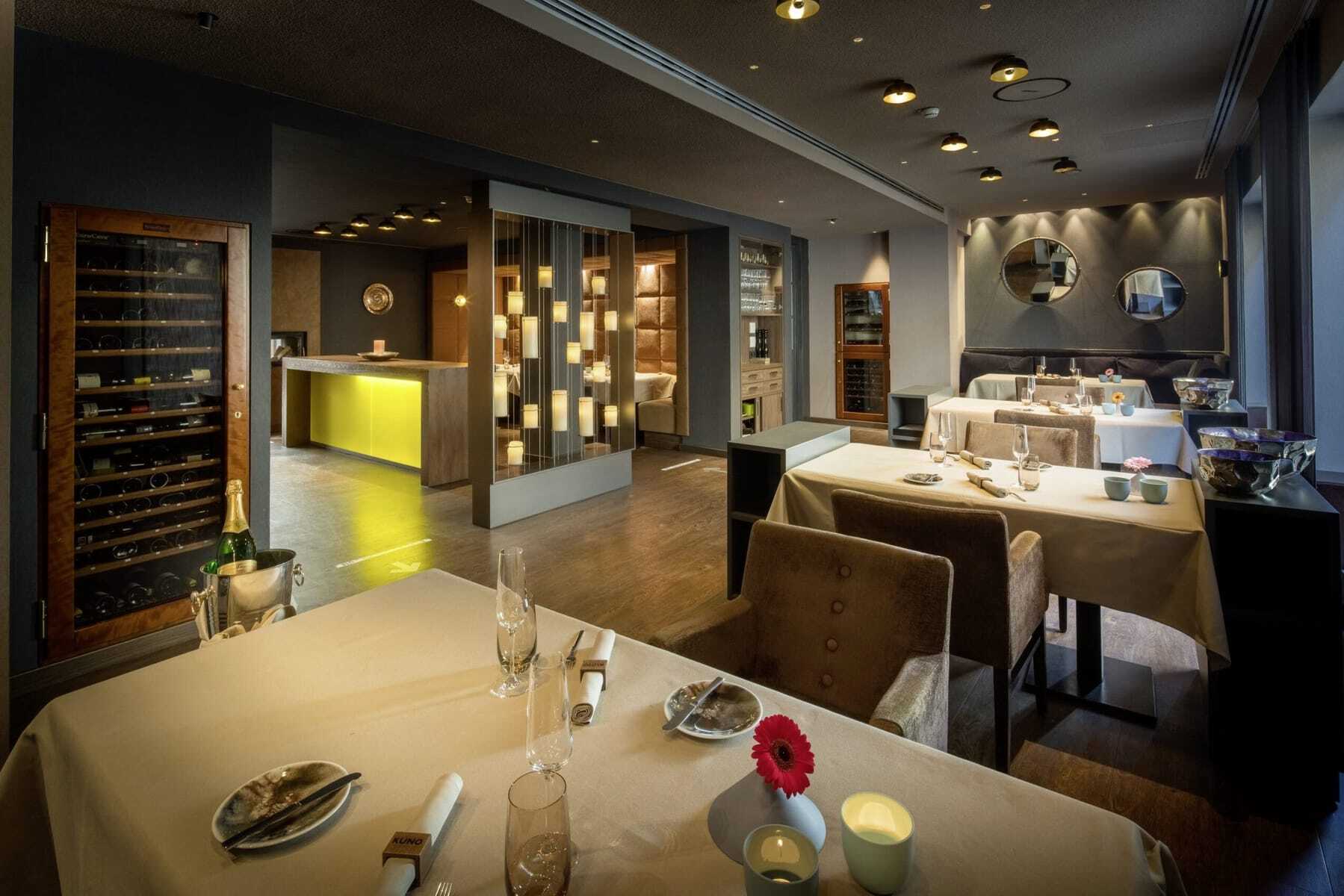 Das Herzstück im Hotel Rebstock ist der cosy Salon: beim Frühstücksbuffet, mittags bei schnellen Gerichten und abends an der Cocktailtheke pulsiert das Leben. Gleich daneben entstehen schier unbeschreibliche Genusswelten, inszeniert von den beiden Küchenchefs Robin Hofmann und Patrick Grieshaber im Sternerestaurant »KUNO 1408«. Ein Geheimtipp fürs Rahmenprogramm: Der »Brückenschoppen« mit Frankenwein, am Mainkai im Stehen aus dem Glas getrunken – das macht Einheimischen, Touristen und Businessgästen richtig Spaß.