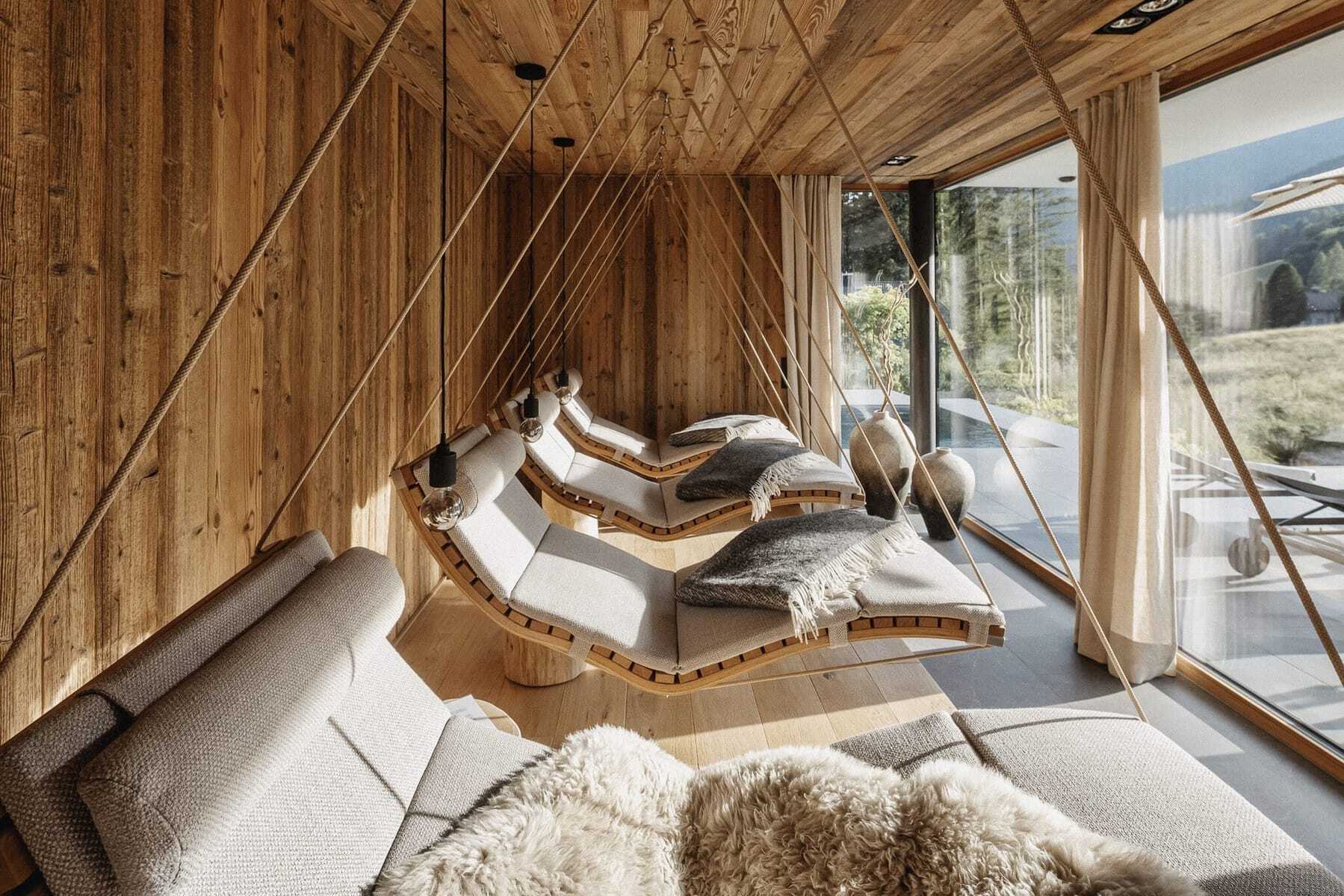 Das Gefühl, eins mit der Natur zu sein. Still und umgeben von Wärme. Dazu tragen auch die natürlichen Materialien im Haus bei: Altholz, Leinen, Felle und Kalkputz. Sie folgen einem klaren Konzept: ein Mix aus Chalet-Stil, Moderne und japanischer Reduktion. Alles ist bewusst gewählt – ästhetisch, stilvoll und exklusiv. Das Ganze auf einer Fläche von 250 Quadratmetern, mit vier Schlafzimmern mit privaten Bädern, Spa und großem Garten. Ein Refugium für alle, die absolute Privatsphäre mit Fünf-Sterne-Luxus suchen. Für Familien und Freundesgruppen bis zu acht Personen oder Paare. Ein großzügiges Chalet. Ein Erlebnis. Und eine Empfindung, die in mir nachschwingt: Ruhe.