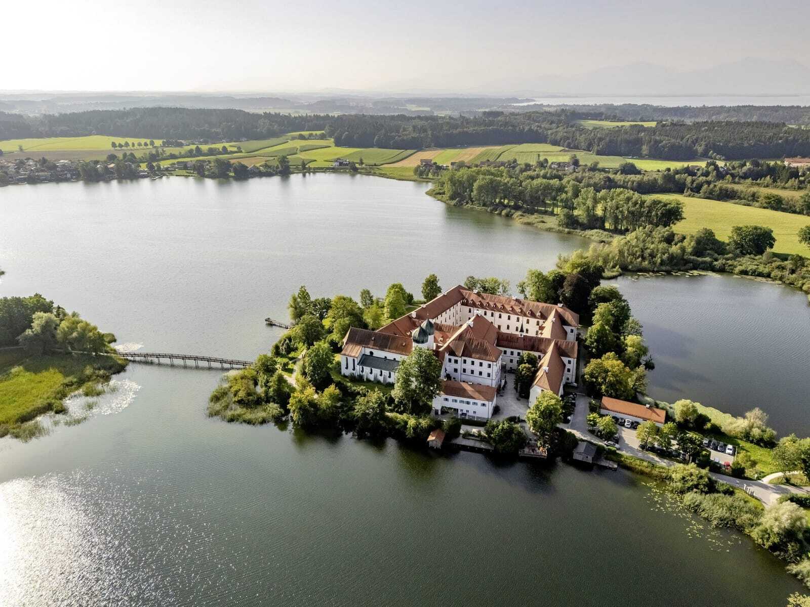 Kloster Seeon wird liebevoll als »Insel der Ruhe und Gelassenheit« bezeichnet. Das liegt an seiner Lage auf einer Halbinsel, es sagt aber auch viel über die Führung des Tagungszentrums aus, die den Gästen Raum für verschiedenste Möglichkeiten bietet: Manche diskutieren im Innenhof, andere treffen sich im Park – für Workshops, Teambuildings oder zum Entspannen. Ein Highlight ist auch die neue Sauna mit Cool-down im Seeoner See.