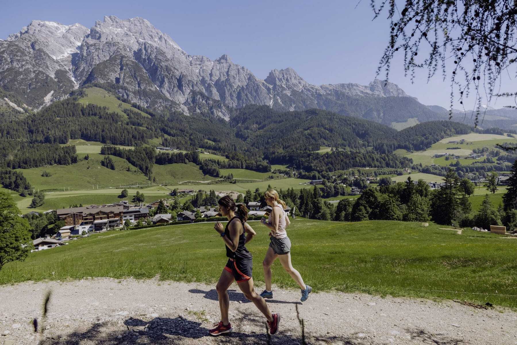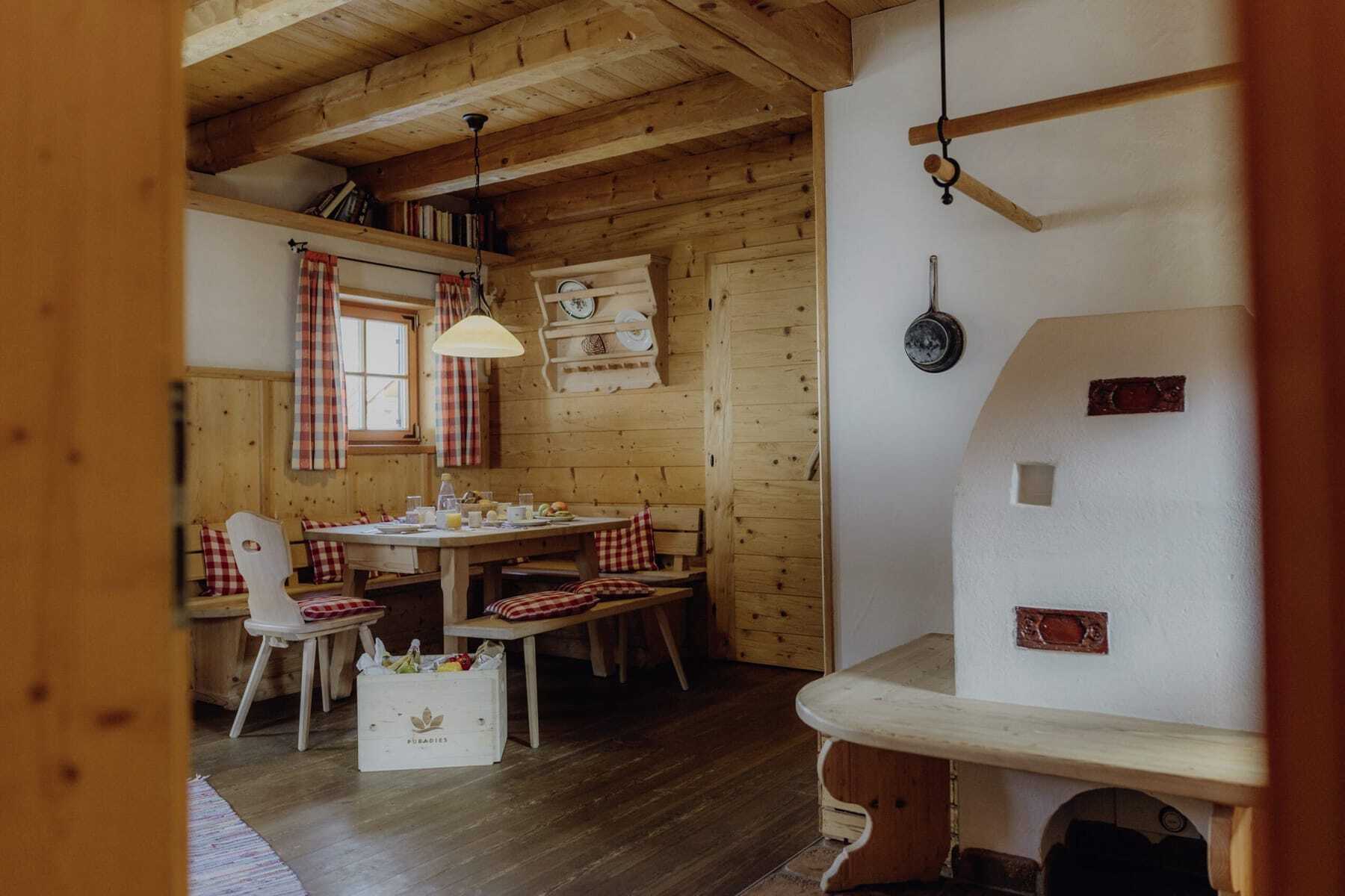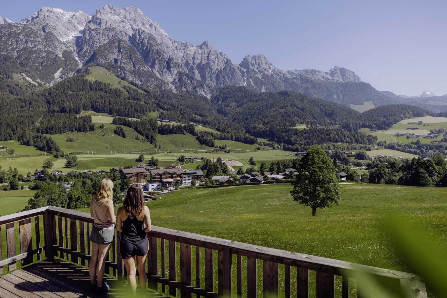 Die Madreiters waren ihrer Zeit schon immer ein bisschen voraus. Seit 1845 betreibt die Leoganger Familie natur- und ressourcenschonende Landwirtschaft und seit 2007 eines der ersten Chaletdörfer Österreichs. Ein Stück oberhalb des alten Embachhofes bauten sie 14 Chalets im urigen Berghüttenstil – natürlich mit Holz aus dem eigenen Wald. Außen Lärche, innen Fichte. Alle ein bisschen unterschiedlich und so angeordnet, dass niemand dem anderen ins Fenster oder auf die große überdachte Terrasse gucken kann. Dafür reicht der Blick in die Pinzgauer Bergwelt, inmitten der das Puradies auf 900 m Höhe liegt. Genauer gesagt: auf einem riesigen Areal zwischen Asitz- und Steinbergbahn, 30 ha autofrei zwischen Wiesen, Weiden und Wäldern. Ideal für Ski-in & Ski-out in den »Skicircus Saalbach-Hinterglemm-Fieberbrunn-Leogang« im Winter und Bike- und Wander- in & out im Sommer.