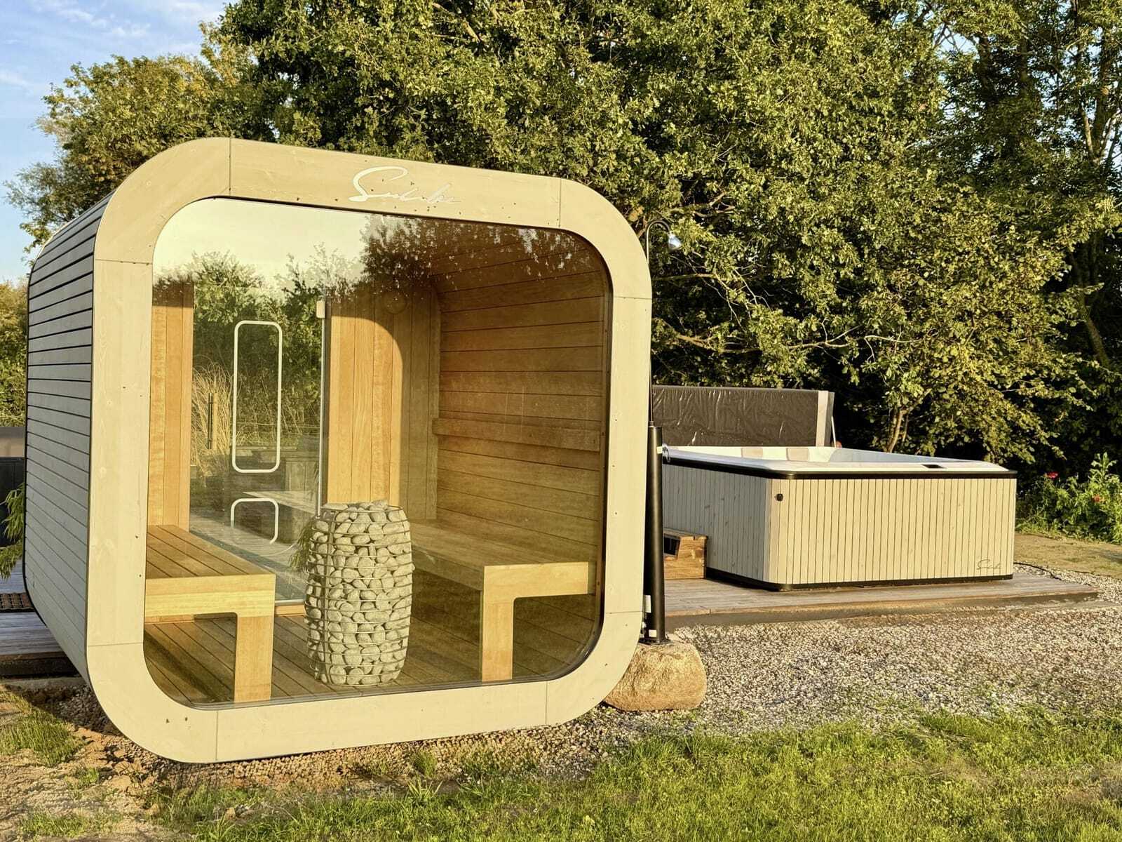 In zwei Größen, durchdacht ausgestattet und behaglich gestaltet, bieten sie einen komfortablen Rückzugsort für Menschen, die Ruhe suchen, nachts gut schlafen und tagsüber Fahrrad fahren, Vögel beobachten, Hamburg oder das Schleswig-Holstein Musik Festival besuchen möchten. Man ist für sich, trifft sich aber gern beim Grillen am Teich oder beim Outdoor-Wellnessen im Whirlpool und in der Sauna. Des Abends im Hotelbistro der alten »Linde« wird ein Bierchen und ein lecker-schlichtes Mahl serviert. Fürs Frühstück aber gibt es einen nach Wunsch bestückten Korb fürs Baumhaus – die Chance auf Bambi-Gucken will man schließlich nicht verpassen …