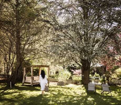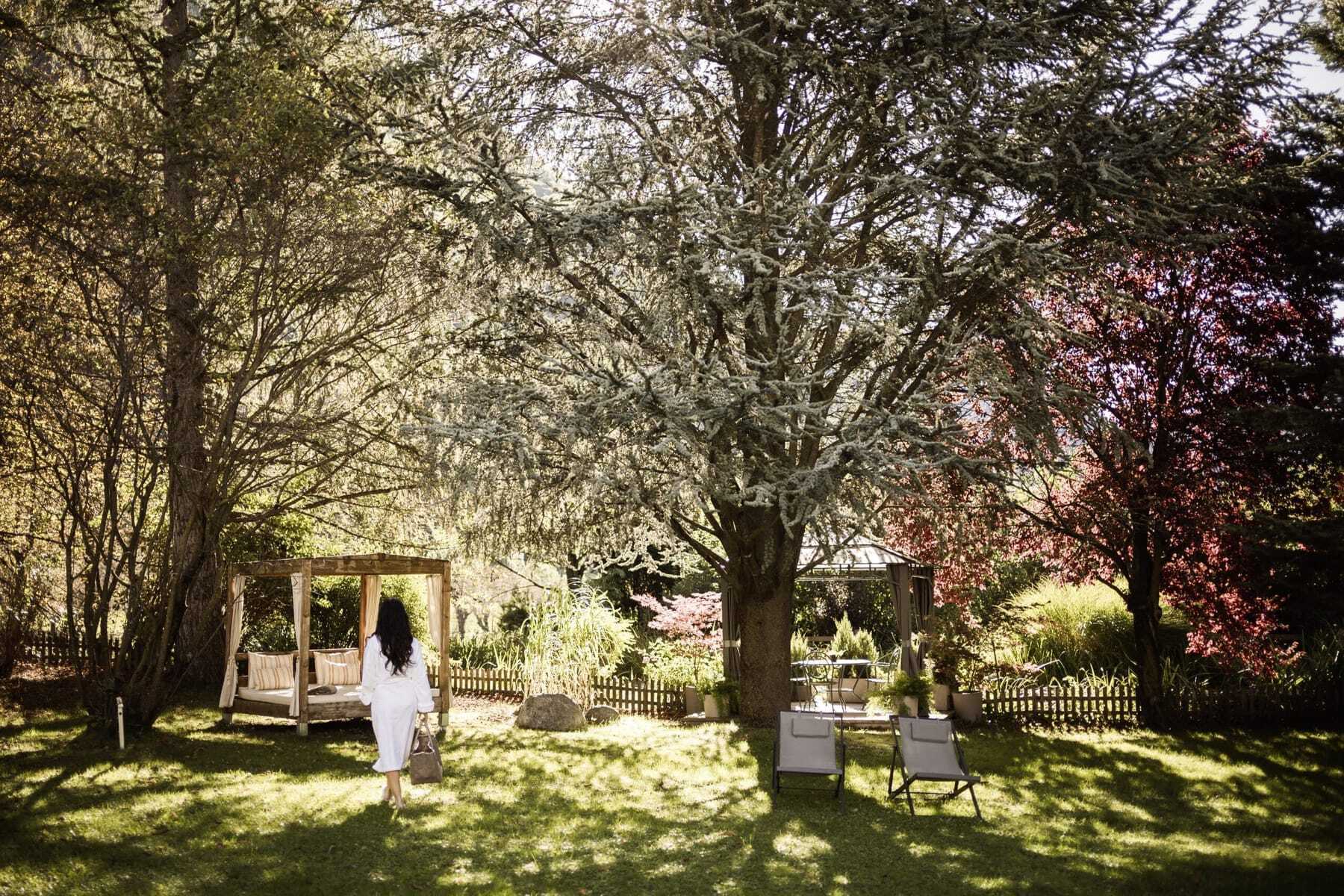 Hoch ragen die Fichten in den Himmel. Nur der fließende Bach ist zu hören. Die Schwingungen der Klangschalen erfüllen unsere Körper, während wir entspannt auf weichem Waldboden liegen. Die Klangschalenzeremonie, die Spaleiterin Jaqueline während der Aktivwanderung anwendet, ist Teil des exzellenten Healthness-Angebots im Romantik Hotel Stafler: Wellnessanwendungen mit nachhaltigem Gesundheitseffekt, wie die ganzheitliche »Alpin Vital Massage« mit Ölen aus Südtiroler Disteln, Kiefern und Arnika.