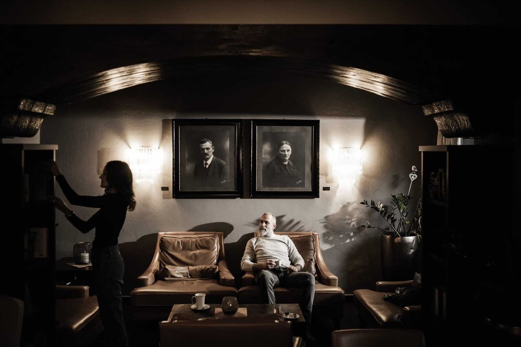 Einhornsuite mit Sitzecke und Doppelbett im Art-Deco-Stil im Romantik Hotel Stafler
