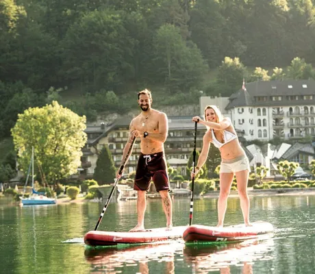Im Jahr 2022 hat sich viel getan in der schlossähnlichen Anlage am Fuschlsee, die aus vier zusammengewachsenen Gebäuden – Stammhaus, Ansitz, Villa und Gütl – besteht und seit drei Generationen von Familie Ebner geführt wird. Zimmer und Badezimmer im Stammhaus wurden renoviert. Das Dampfbad neu gemacht. Aufsteller in den Ruheräumen sorgen für mehr Privatsphäre und der Relaxraum »SeenSucht« für neue Perspektiven. Dieser schwebt über den Innenpools und gibt mit seinen Glasfronten freien Blick auf den smaragdgrünen See im Salzkammergut. Hier darf auch geplaudert werden. Steckdosen machen Arbeiten am Laptop auf gemütlichen Loungcouchen möglich und Holzgondeln laden zum sanften Schaukeln ein. Wer mehr Action will, kann sich den ganzen Tag über im Rahmen des Aktivprogramms austoben und neue Aktivitäten ausprobieren – vom Kajakfahren über E-Mountainbiken bis hin zum Golfspielen oder Bouldern. Danach zeigt das Küchenteam, was Verwöhnen bedeutet – natürlich mit Kräutern aus dem Heilkräutergarten.