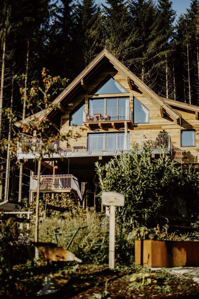 Über den Dingen schweben? Check! Rückzug an einen besonderen Ort? Check! Im Einklang mit der Natur? Check! Ein wenig Abenteuer und trotzdem Luxus mit Stil? Check! Dass meine träumerische Liste so einfach zu erfüllen ist, hätte ich nicht gedacht, bis ich ein Stück hinter dem Hotel Gassner am Waldrand stehe. Dort thront es auf Stelzen zwischen den Baumkronen, das einzige Chalet, ein Baumhaus mit Spitzgiebeldach. Zweigeschossig, 147 qm groß, erbaut aus altem Stadelholz, massiv, mit Glas und Naturmaterialien aus dem Nationalpark Hohe Tauern. Gastgeberin Sonja Gassner ließ sich vor Baubeginn per Kran in die perfekte Höhe heben, um sicherzugehen, dass der Blick über die Dächer von Neukirchen reicht. Rechts die Hohen Tauern, links die Kitzbüheler Berge.