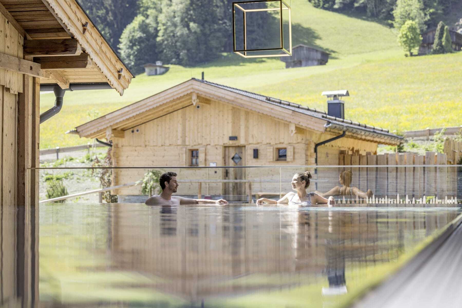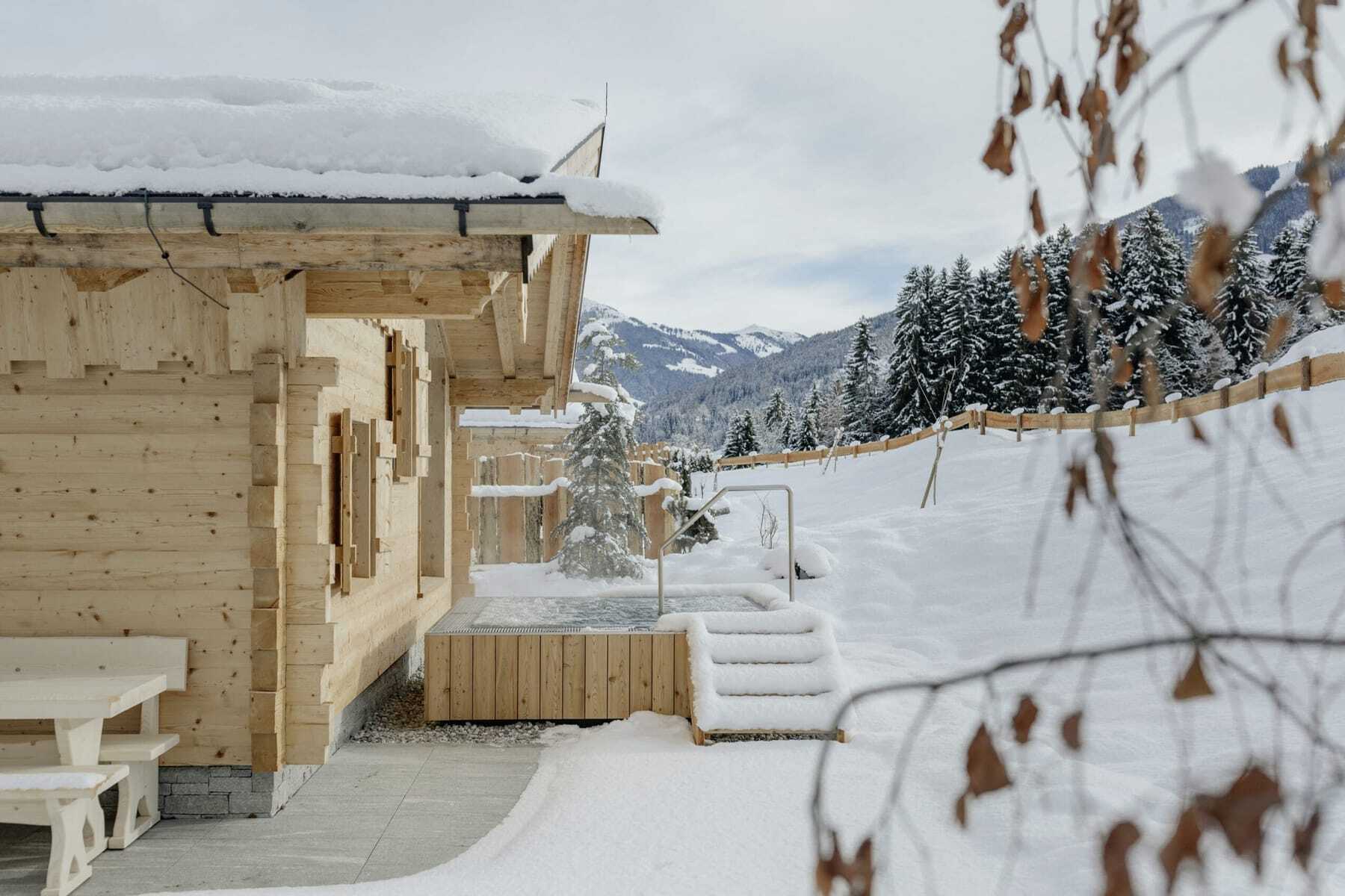 Der nächste Morgen beginnt mit einem absoluten Highlight: Das »Frühstückskisterl« wartet vor unserer Haustür und ist vielmehr ein Fünfsternefrühstück aus feinsten, regionalen Zutaten – liebevoll zubereitet. Wir schlemmen uns durch und nutzen anschließend die inkludierte Alpbachtal-Card für eine kostenlose Fahrt mit der Wiedersbergerhornbahn. Zu viel trödeln wollen wir aber nicht – denn wir haben noch den Infinitypool im ursprünglichen Heustadl in den Hygna Chalets auf unserer To-do-Liste. Und der ist tatsächlich noch beeindruckender als auf den Bildern. Danach geht’s noch für eine Abendsession ins Gym – selbstverständlich mit Blick ins Grüne.