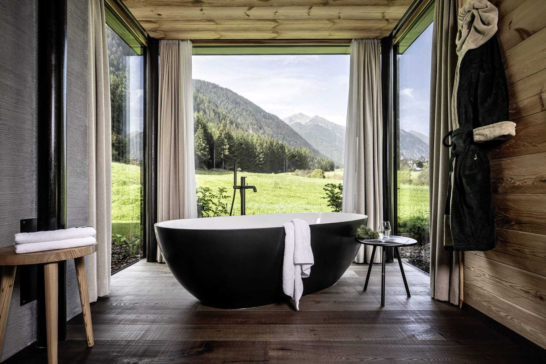 Frei herum hoppelnd begrüßen mich die Kaninchen auf der Waldzufahrt zum Valsegg in der Almen- und Skiregion Gitschberg Jochtal. Ein kleiner Kosmos heiler Welt, fernab vom Alltag, der zum Aufladen der Batterien einlädt. Idyllischer kann die Lage eines Chaletdorfes kaum sein: Zwischen den dunklen Tannen des eigenen Waldes der Inhaberfamilie Lanz und sattgrünen Wiesen weitet sich der Blick über die 17 traumhaft schönen Naturchalets auf das Dorf Vals. In den liebevoll um einen kleinen Dorfplatz mit Feuerstelle angelegten Chalets mit bis zu 150 qm Fläche werden Wohnträume wahr: sägeraues, massives Holz aus dem eigenen Wald, hochwertige Lodenstoffe, regionale Wolle und naturbelassener Stein. Die Natur steht hier spürbar im Fokus. Viele durchdachte Details, wie die riesige Walk-in-Dusche und der Holzkamin im Wohnraum sorgen dafür, dass man hier eigentlich nicht mehr weg will. Das müsste man auch nicht, denn die voll ausgestattete Küche, modernste Technik, das täglich vor die Tür gestellte Feuerholz und vor allem das luxuriöse Private Spa mit freistehender Badewanne, Hot Tub, Finnischer Sauna und großer Sonnenterrasse runden den Komfort-Urlaub ab. Körper und Seele kommen zur Ruhe, ein Gefühl von Geborgenheit stellt sich ein.