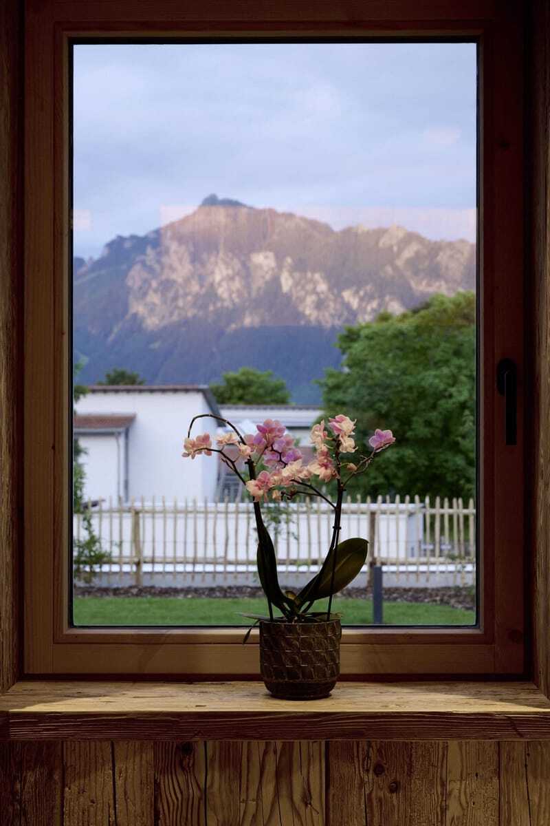 Während wir auf dem Balkon des Chalets »Waldblick« sitzen, tauchen die ersten Sonnenstrahlen des Morgens den kleinen Wald rund um die Ziegelberg Chalets in ein sanftes Licht. Vögel zwitschern – ansonsten absolute Stille. Nur wenige Schritte vom Wald entfernt bieten die Chalets seit Juli 2025 ein Refugium für alle, die Ruhe, Luxus und Allgäuer Natur genießen möchten. Und das auf Fünf-Sterne-Niveau. Inhaber Thomas Scheibel bringt die besondere Lage auf den Punkt: »Wenn man Glück hat, kann man Rehe direkt vor dem Chalet sehen.«