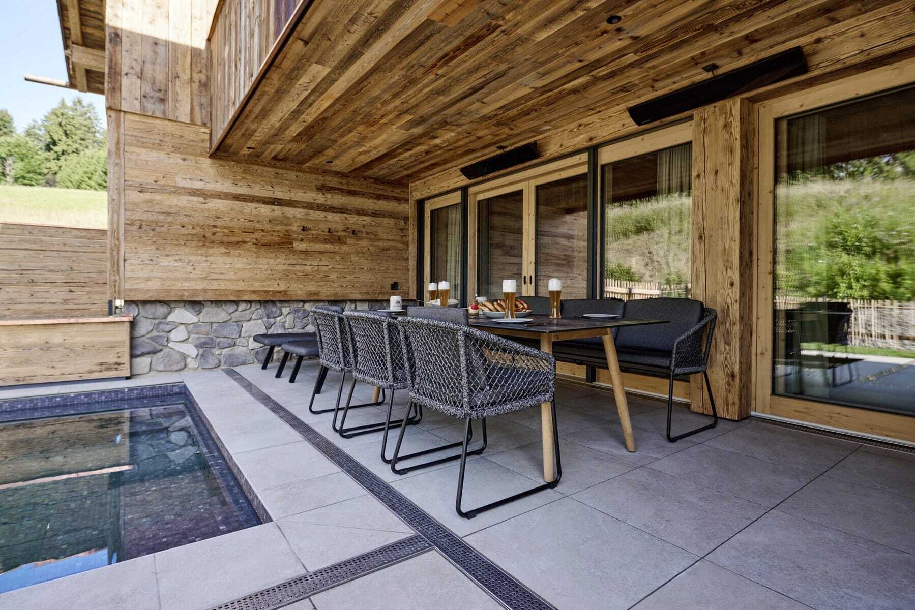 Chalet Schlossblick: ganzjährig beheizter Außenpool; Chalet Waldblick: beheizte Außenbadewanne