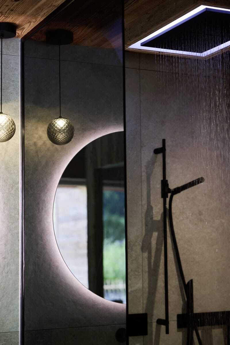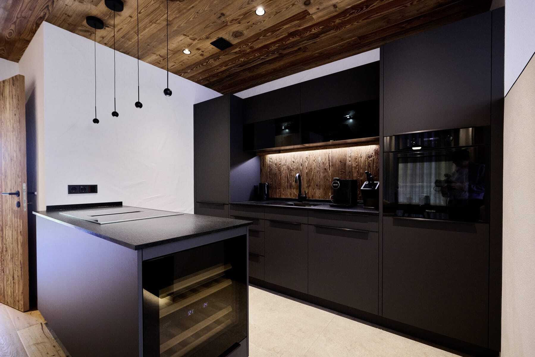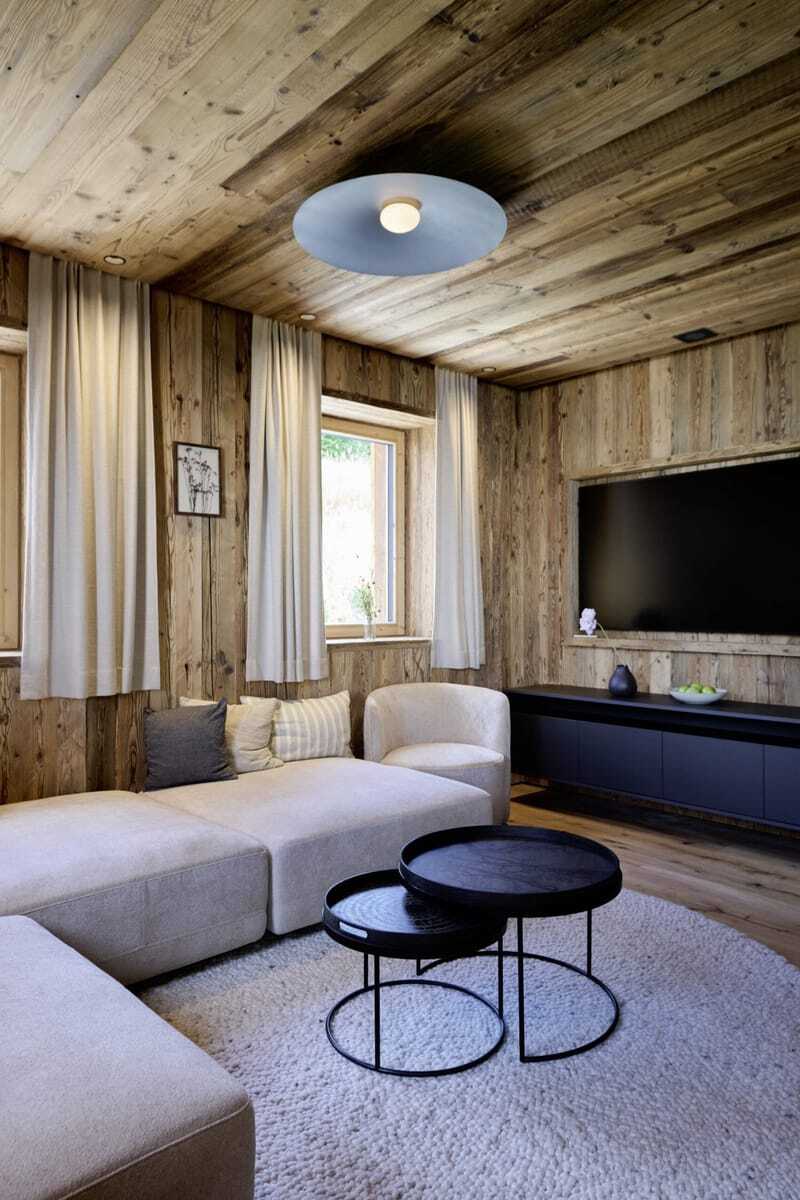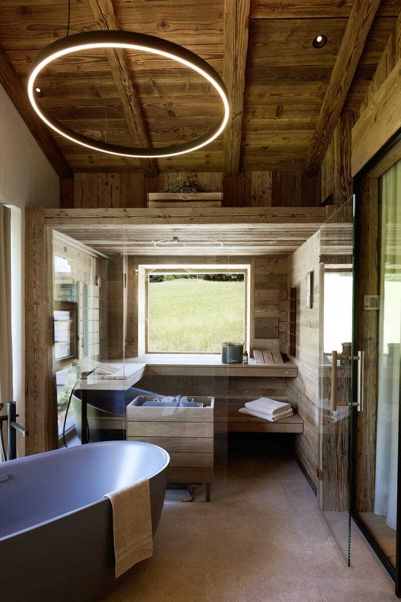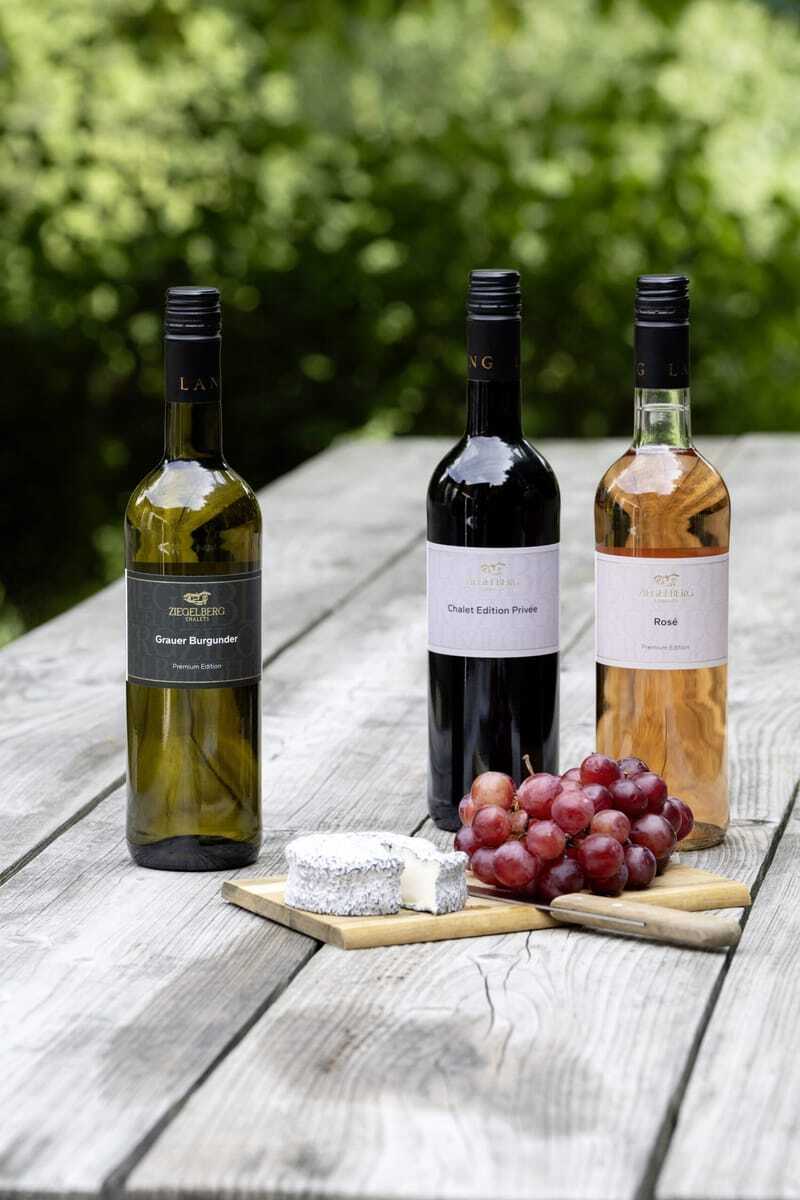 Auf 90 Quadratmetern Wohnfläche finden Gäste hier alles, was den Aufenthalt zum Erlebnis macht: ein großes Doppelbett, eine gemütliche Schlafnische (falls weitere Begleitung oder die Kids mit dabei sind), ein stylisches Badezimmer mit privater Sauna und Infrarot-Rückenstrahlern, freistehender Badewanne, Regendusche mit Lichteffekten sowie einen Kamin, um sich abends richtig schön einzukuscheln. Im Garten laden eine Hängematte, Sonnenliegen, ein Weber-Elektrogrill und eine Panoramabadewanne zu entspannten Stunden ein. Und was, wenn es mal kühler ist? Dann sorgen Heizstrahler auf Balkon und Terrasse für wohlige Wärme. Das 132 Quadratmeter große Nachbar-Chalet »Schlossblick« lockt zusätzlich mit einem privaten, beheizten Außenpool. Selbstversorger-Urlaub? Na klar! Gibt es doch eine top ausgestattete Küche mit Backofen, Cerankochfeld, Kaffeemaschine und Weinkühlschrank – auf Wunsch gefüllt mit Champagner oder limitierten Hausweinen.