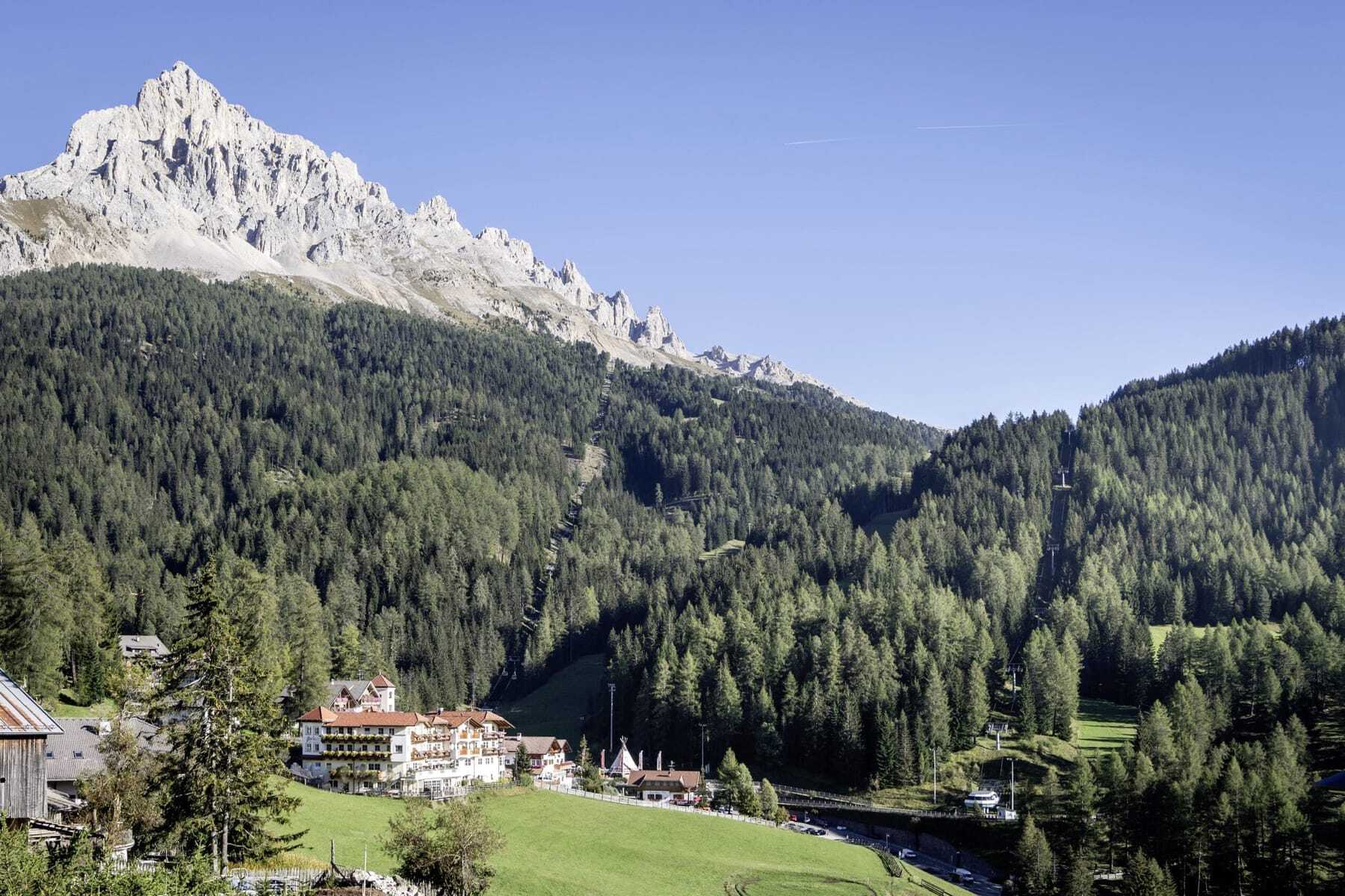 Familien- und Aktivhotel im UNESCO Welterbe Dolomiten mit umweltbewussten Eco Lodges, Abenteuerprogramm für Kinder und ganztägiger Sonne bis in die Abendstunden.