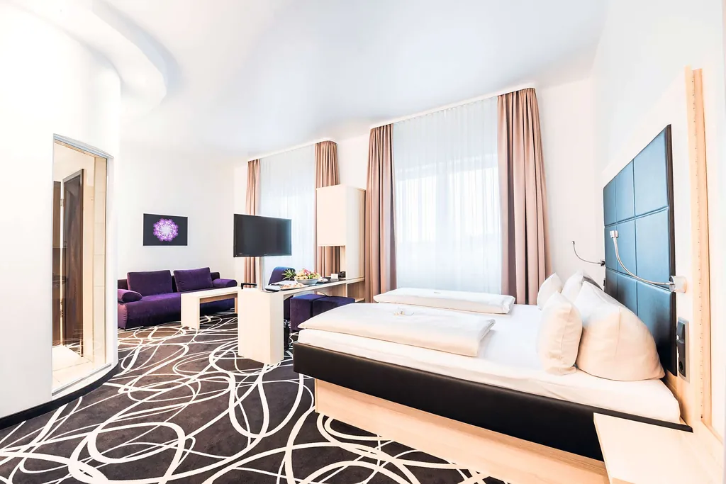 Auch und ganz besonders Tagungsgruppen. Sie schätzen nicht nur die unterschiedlichen Ebenen, in denen man unter sich sein kann, und das schicke, farbenfrohe Ambiente, sondern auch die verfeinerte Küche, die der Küchenchef des Hauses im Zuge des Um- und Anbaus entwickelt hat. Darunter ein »Sieben-Welten-Menü«, in Anlehnung an den angrenzenden 30.000 Quadratmeter großen Wellnesskomplex Sieben Welten Therme & Spa Resort. Hier kann der Tagungsgast in eine einmalige Erlebnis- und Sinneswelt eintauchen und durch sieben Länder der Erde reisen, von Afrika über Mexiko bis nach Japan – zur Entspannung nach dem Seminar, zum Fitmachen zwischendurch oder als Event zu unterschiedlichen Anlässen.