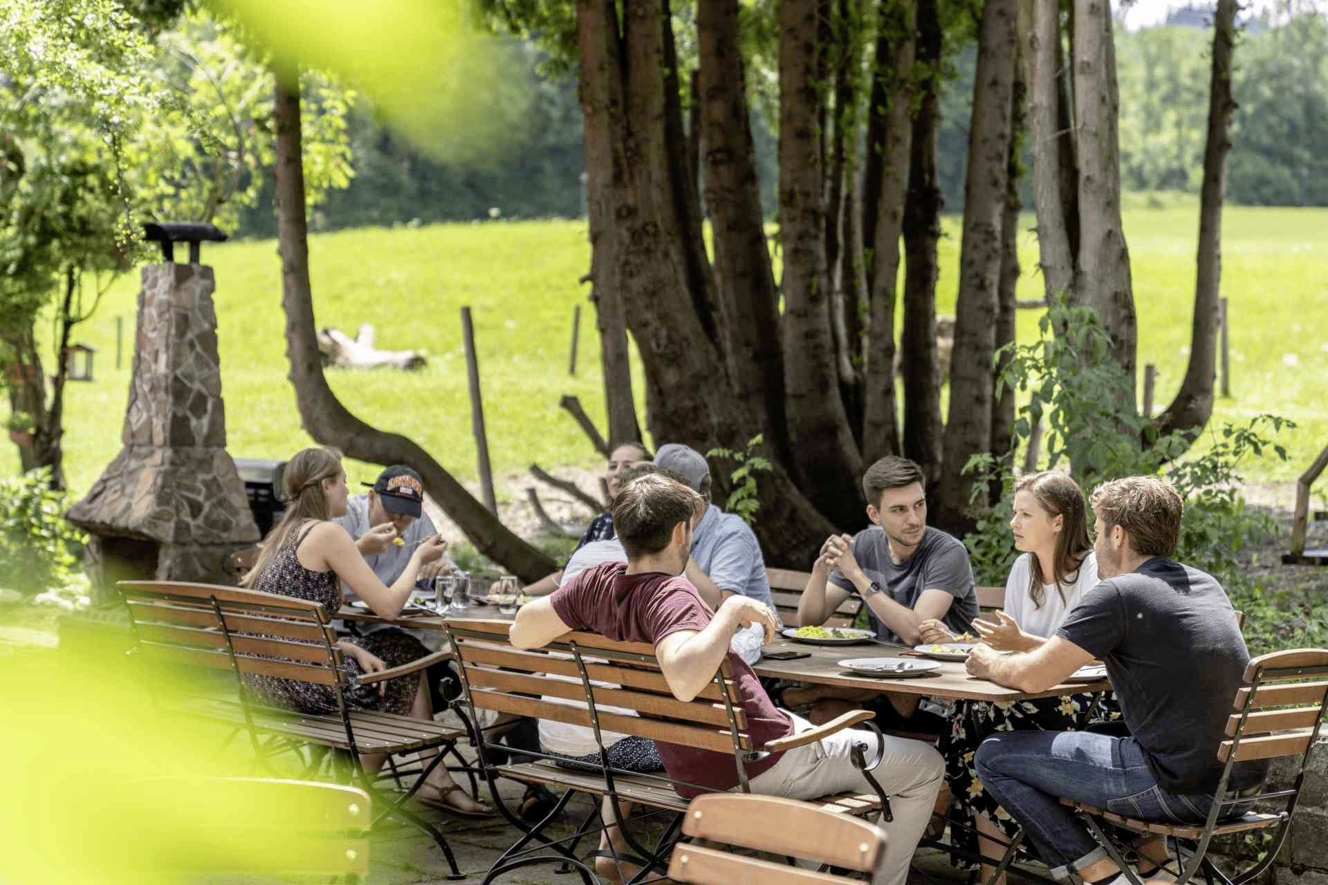 Dieser ganzheitliche Ansatz manifestiert sich auch in der Kulinarik. Im Rahmen der biozertifizierten vegan-vegetarischen Küche werden im Speisesaal, der mit seinem Kaminofen eher einem großen Wohnzimmer gleicht, tagesfrische Köstlichkeiten – teils vom eigenen Permakulturacker – serviert. An den großen Tischen tauschen sich die Teilnehmer aus, ist Platz für Gespräche außerhalb des Firmenumfelds. Auch die 70 wohnlichen Zimmer, die bewusst auf WLAN und TV verzichten, unterstützen die Fokussierung auf das Wesentliche: die Begegnung im Team und die innere Einkehr.