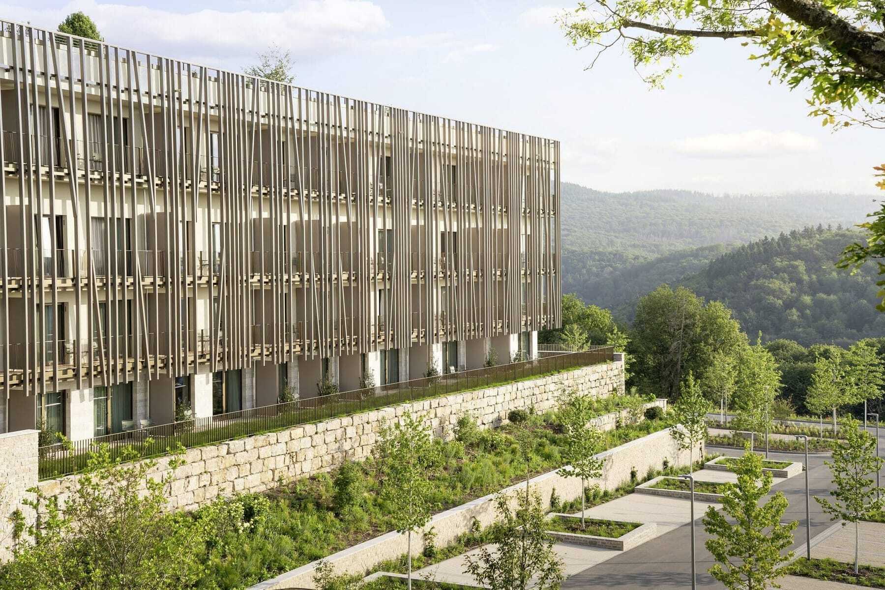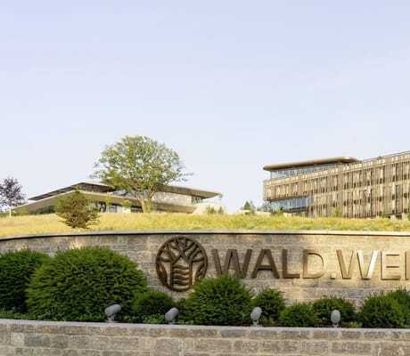 80 reduziert edel gestaltete Zimmer stehen zur Verfügung (mit Blick in den Wald oder in die Weite), eine kleine Saunalandschaft auf dem Dach (dito), und mit dem WALD.FEIN gibt es ein Restaurant, in dem die Region im Glas wie auf dem Teller zelebriert wird. Die einzigartige Rooftopbar (mit Blick) kann für bis zu 100 Personen exklusiv angemietet werden. Schon mehrfach wurde das Hotel komplett für Firmenveranstaltungen gebucht. Dass auch die Hotelinhaber über Weitblick verfügen, deutet sich auf dem weitläufigen Gelände an. Hier entsteht – ohne den Hotelbetrieb zu stören – bereits die Erweiterung des WALD.WEIT. Mit mehr Zimmern, größerer Gastronomie und grandiosem Spa.