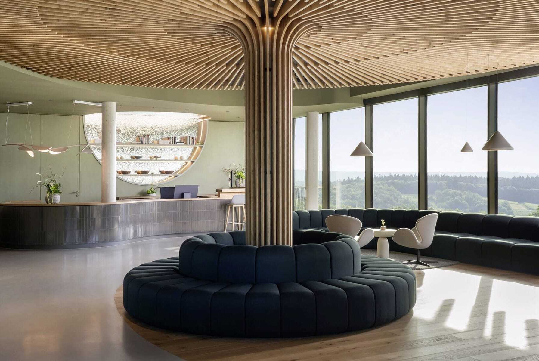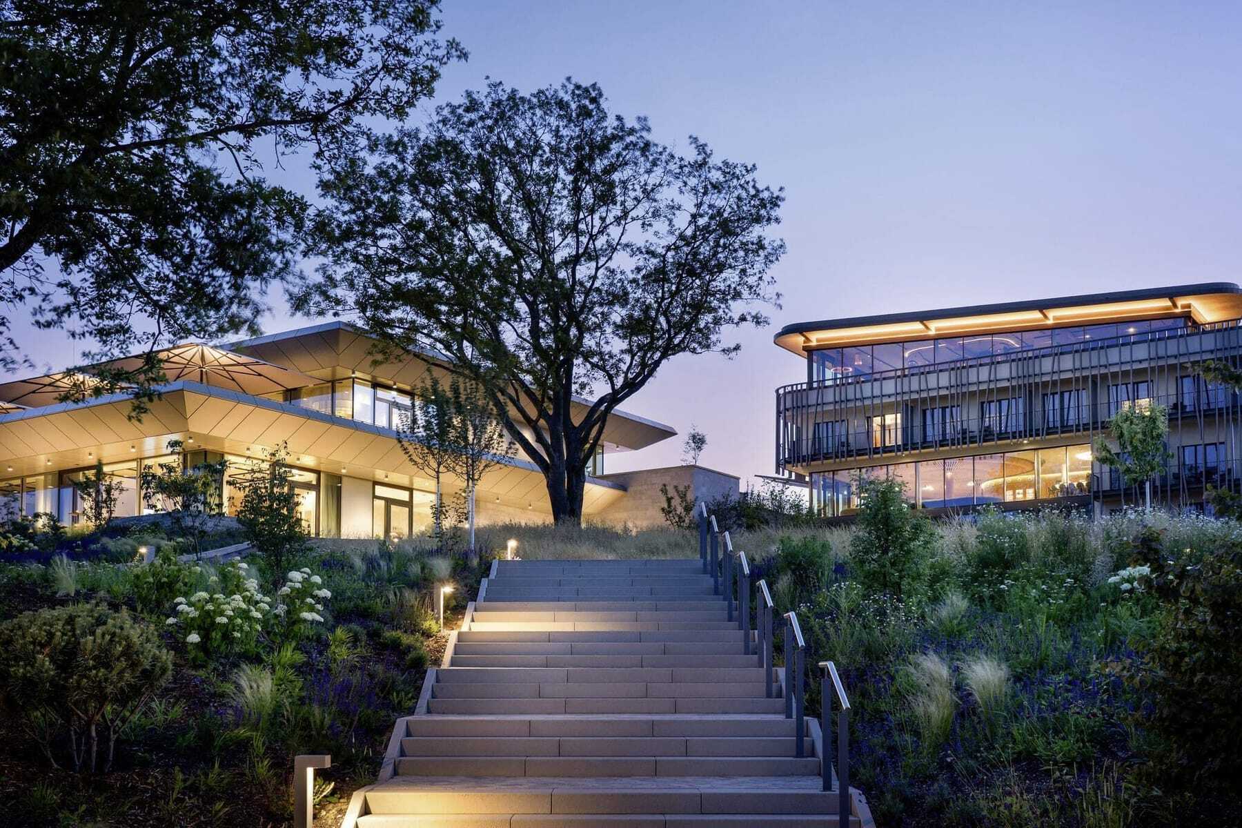 Die Rezeptionistin lächelt. Sie kennt das schon. Diesen entrückten Blick von Gästen, die zum ersten Mal ins WALD.WEIT kommen. Die sich das Sträßchen durch den Wald oberhalb des Rheingaustädtchens Kiedrich hochgeschlängelt haben. Die natürlich wussten, dass das Hotel auf einem Hochplateau mit schönem, weitem Blick liegt. Und die dann eben dieser Blick – man muss es so sagen – umgehauen hat.