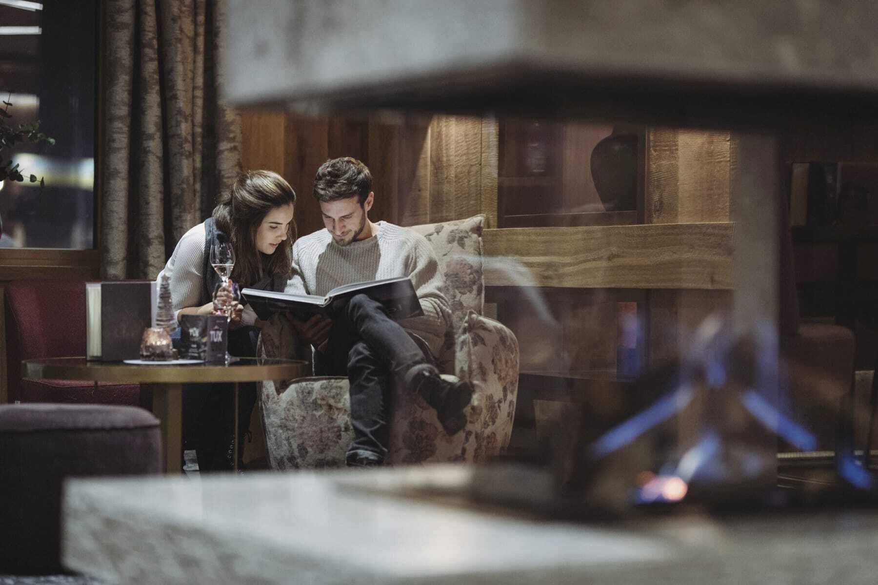 Und überall beeindruckt mich diese entspannte und harmonische Atmosphäre. So auch im HimmelREICH. Das sogenannte Wohnzimmer im obersten Stockwerk erstreckt sich mit Yogaraum und Sonnenterrasse über die gesamte Etage. Lichtdurchflutet mit unverbautem Panoramablick auf die Zillertaler Gipfel. Vom Sunset-Relaxpool reicht die Aussicht sogar bis zum Hintertuxer Gletscher. Den ganzjährig beheizten Infinitypool würde ich am liebsten gar nicht mehr verlassen. Doch die Neugier treibt mich in die Infrarot Skylounge auf der Dachterrasse. Während ich sanft in einer der Infrarotliegen schaukle, freue ich mich schon aufs Abendessen in dem mit einem Michelin-Key ausgezeichneten Haus: ein Fünf-Gänge-Gourmetmenü, Tiroler Küche mit internationalem Touch.