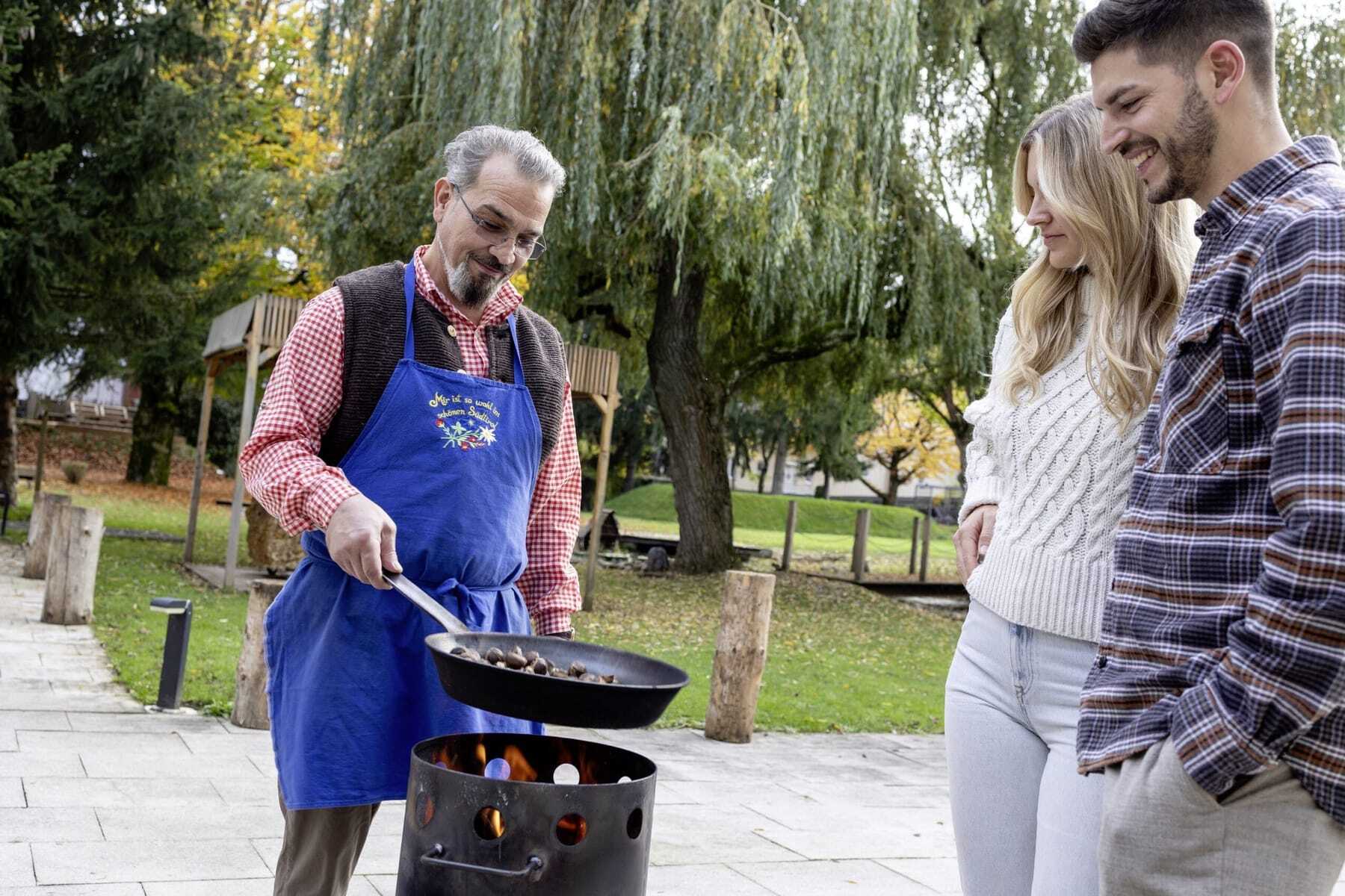 Dass die unnachahmliche Südtiroler Lebenskultur sich auch im kulinarischen Konzept widerspiegelt, ist keine Frage. Das Frühstücksbuffet mit der eigenen Speckstube und den Original Südtiroler Spezialitäten sucht seinesgleichen. Den passenden optischen Rahmen bilden Schwarz/Weiß-Fotografien von Apfel- und Weinplantagen, Schlössern und der Landschaft der Südtiroler Heimat Hillebrands, der beim berühmten »Keschtn(Kastanien)rösten« auf der Terrasse auch gerne selbst Hand anlegt. Authentischer kann man Südtirol nur in der Region selbst erleben.