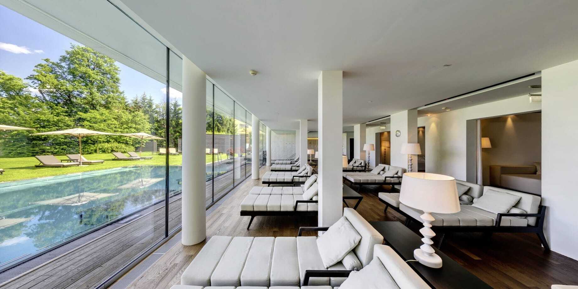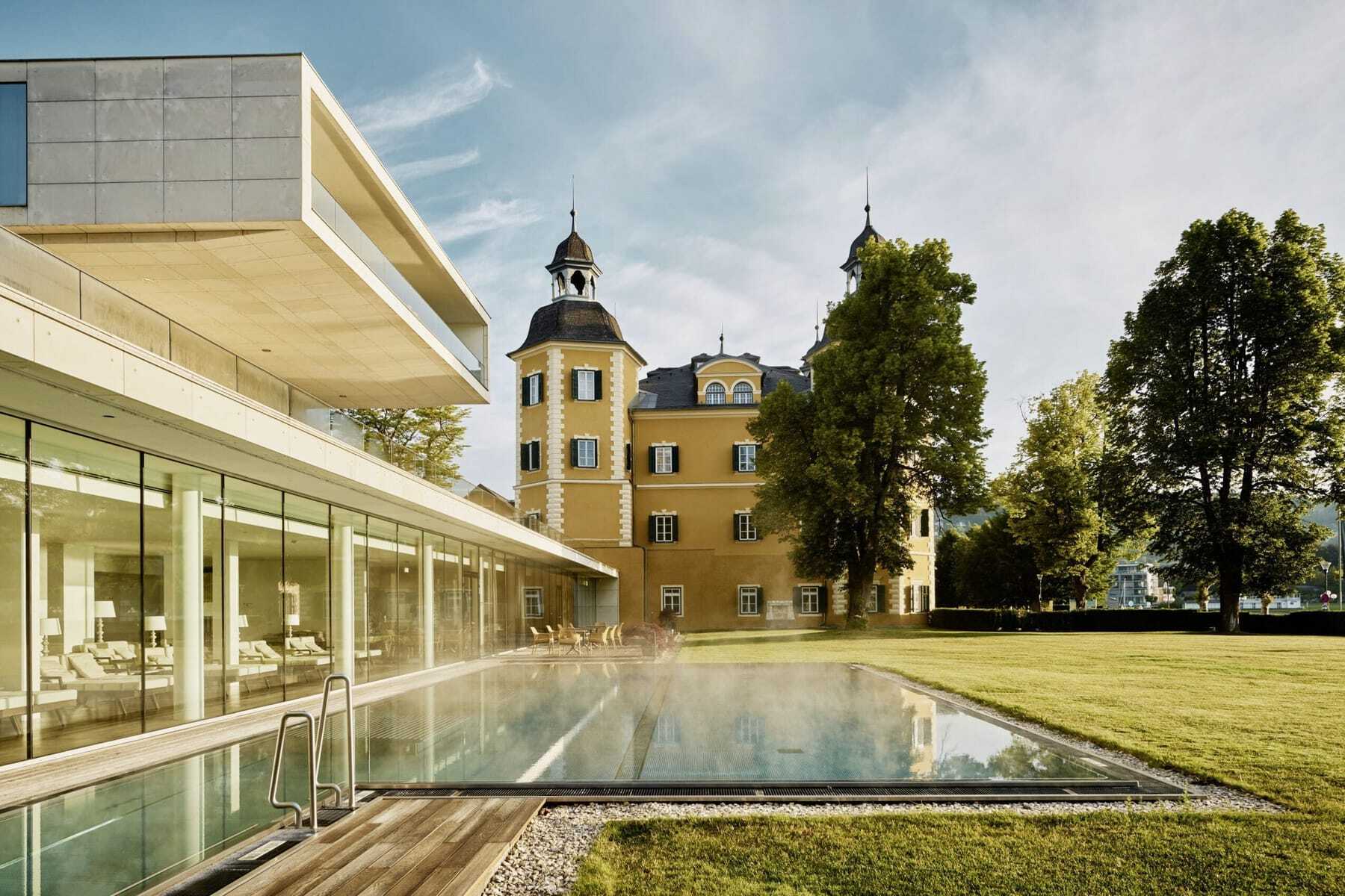 Später – zurück im Schloss, diesmal im modernen Anbau aus Glas und Stein, – tauche ich ins »Acquapura Lake Spa« ein. Auf einer Fläche so groß wie 14 Tennisplätze erstrecken sich Cardio- und Fitnessraum, Innen- und Außenpools sowie Saunen – alle mit Seeblick. Ruheräume mit Wasserbetten, Spa-Cinema und Schwebeliegen sowie zahlreiche Behandlungsräume. Die Anwendungen? Fein abgestimmt auf jeden Gast, nach den vier Prinzipien Harmonie, Klarheit, Entschleunigung und Energie. Wer sich intensiver mit Schönheitsbehandlungen beschäftigen möchte, findet im angeschlossenen Medical Spa weitere Angebote. Dieses wird von Dr. Peter Durnig geleitet, Facharzt für plastische, ästhetische und rekonstruktive Chirurgie.