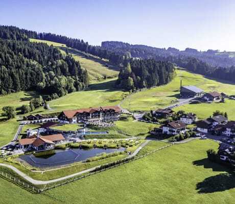 »Unser Schwalbennest sollten Sie unbedingt besuchen«, empfiehlt mir die junge Hotelleiterin Eva Hauber fröhlich. Seit fünf Jahren führt sie zusammen mit ihren Geschwistern und ihrem Vater Klaus das Vier-Sterne-Superior-Naturresort in Oberstaufen. Sie hat nicht zu viel versprochen: Über den zweieinhalb Kilometer langen Klimapfad (mit Überraschungs-Stationen wie den Hängematten im Wald!) erreiche ich das wie ein riesiges Nest angelegte Bergrestaurant. Bei schönem Wetter genießen die Gäste hier auf 950 Metern das urige Bergfrühstück mit Blick auf die Allgäuer Wohlfühlnatur. Auch für kulturelle Veranstaltungen wie Open-Air-Kino-Erlebnisse oder musikalische Events bietet das von Holzzweigen ummantelte Schwalbennest den imposanten Rahmen.
