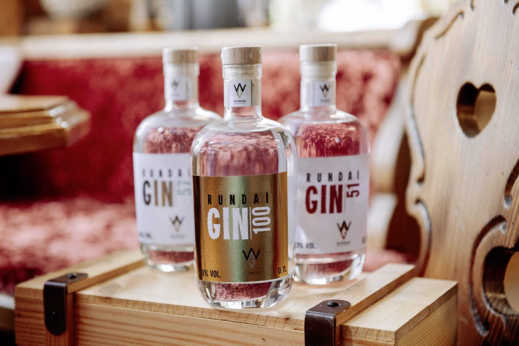 Und gleichzeitig gibt es »for adults only« aber Ruheräume mit Kuschelliegen, Dampfbädern, Saunen, Outdoorpool, Naturweiher und dem exklusiven »Naked Rock-Pool«. Der AquaGarten mit seinem Blumenmeer auf drei Ebenen lädt zum Chillen ein, gut fürs Entspannen sind auch die eher »leisen« Räucher-Rituale in der Schwarzbrenner Sauna. Heiß her geht es dagegen, wenn die Saunameisterin die Essenz von Senior Geiger’s selbstgebranntem Gin verwedelt. Gin ist im Bodenmaiser Hof generell ein Thema − nicht nur »original«, etwa in der schönen Oma Rosa-Bar! Sandra Geiger-Pauli nutzt die Wacholderbeere nämlich sehr effektvoll als Basis ihrer selbst entwickelten »Crazy Rundai«-Pflegeprodukte für Signature Treatments im HeimatSpa.