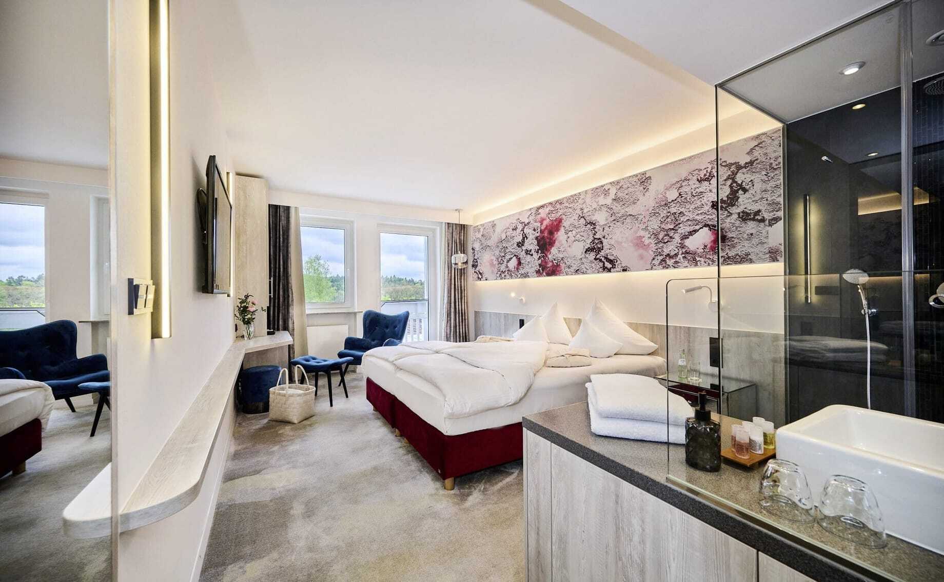 »Feel Free« lautet das Credo der renommierten Wutzschleife im Naturpark Oberer Bayerischer Wald. Das Motto ist eine Art Einladung an die Gäste, einfach mal »runterzukommen« und den Alltag hinter sich zu lassen. Das funktioniert gleich wenn man die großzügige Lobby des Privathotels betritt, die unter einem hohen Glasdach viel Luft und Raum bietet und dieses »feel free« bereits bestens verkörpert.