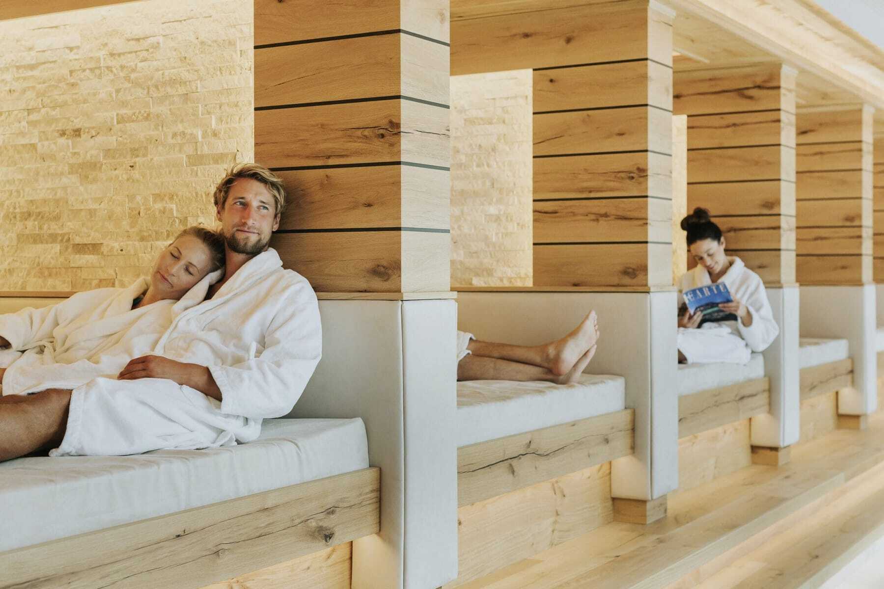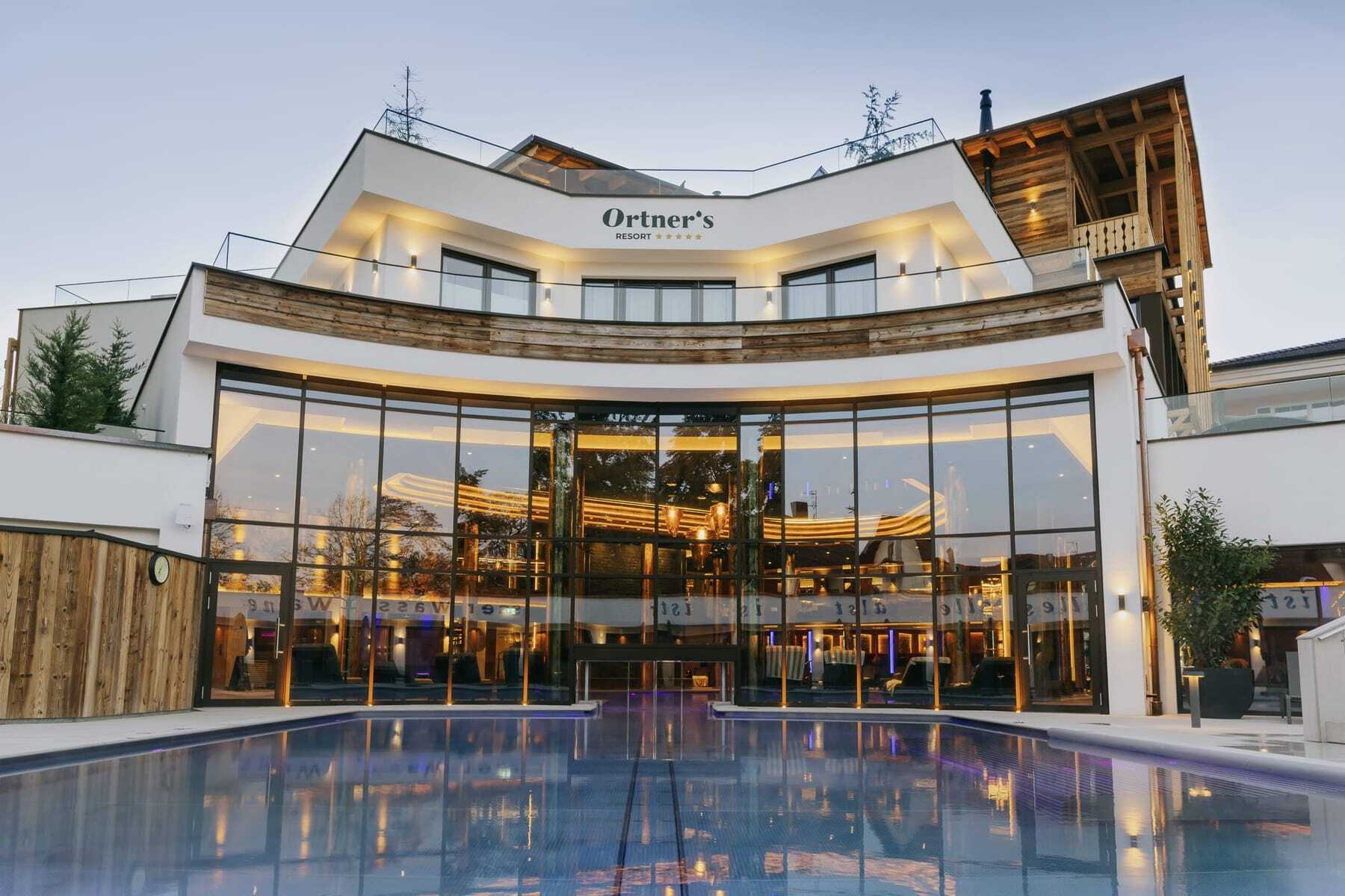 Gute Stimmung verbreiten zudem die Saunameister mit ihren Aufgussevents, fürs Cooldown gibt es den Eisbrunnen oder den Bio-Schwimmteich im Freien. Danach laden Kuscheloasen, Sonnendecks oder die urige »Ruhe-Alm« im Dachgeschoss zum Entspannen ein. Und im Spa werden die Gäste mit Beauty- und Relax-Behandlungen verwöhnt, während sich die Therapeuten der Physiotherapiepraxis um die Mobilität der Urlauber kümmern. Jeder soll sich frei fühlen, ganz nach Gusto genießen, was auch mit den Kreationen der Küche gut gelingt. Und wer nach dem Abendmenü nochmal heiß baden will – kein Problem, die Thermenwelt im Ortner’s Resort ist bis 22 Uhr geöffnet!