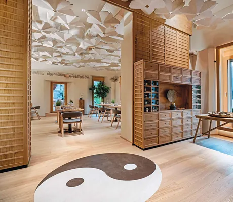 Seinem Herzen folgte er auch, als er vor vielen Jahren das Posthotel zum Erwachsenenhotel machte und die Einbindung der Traditionellen Chinesischen Medizin in allen Bereichen vorantrieb. Der Erfolg gibt ihm Recht, denn die Hinwendung zum eigenen Ich ist heute wichtiger denn je. Gesundheit und insbesondere Prävention spielt im Angebot des Posthotel daher auch eine entscheidende Rolle. Ein neues Biohacking Labor bietet fortschrittliche Anwendungen wie PEMF (pulsierende elektromagnetische Felder), Vagusnervstimulation und Kompressionstherapie. Gemeinsam mit der TCM-Ärztin im Haus und dem Küchenchef wurde das Gastronomiekonzept auf die Treatments abgestimmt. Im TCM-Restaurant »Tenzo« dreht sich alles um »High-EnergQi«-Kulinarik: Die Gerichte werden speziell nach den fünf Elementen zubereitet, um das Qi optimal fließen zu lassen. Begleitet werden die kulinarischen Erlebnisse von auf den jeweiligen YinYang-Status abgestimmten Tees und Gewürzen.
