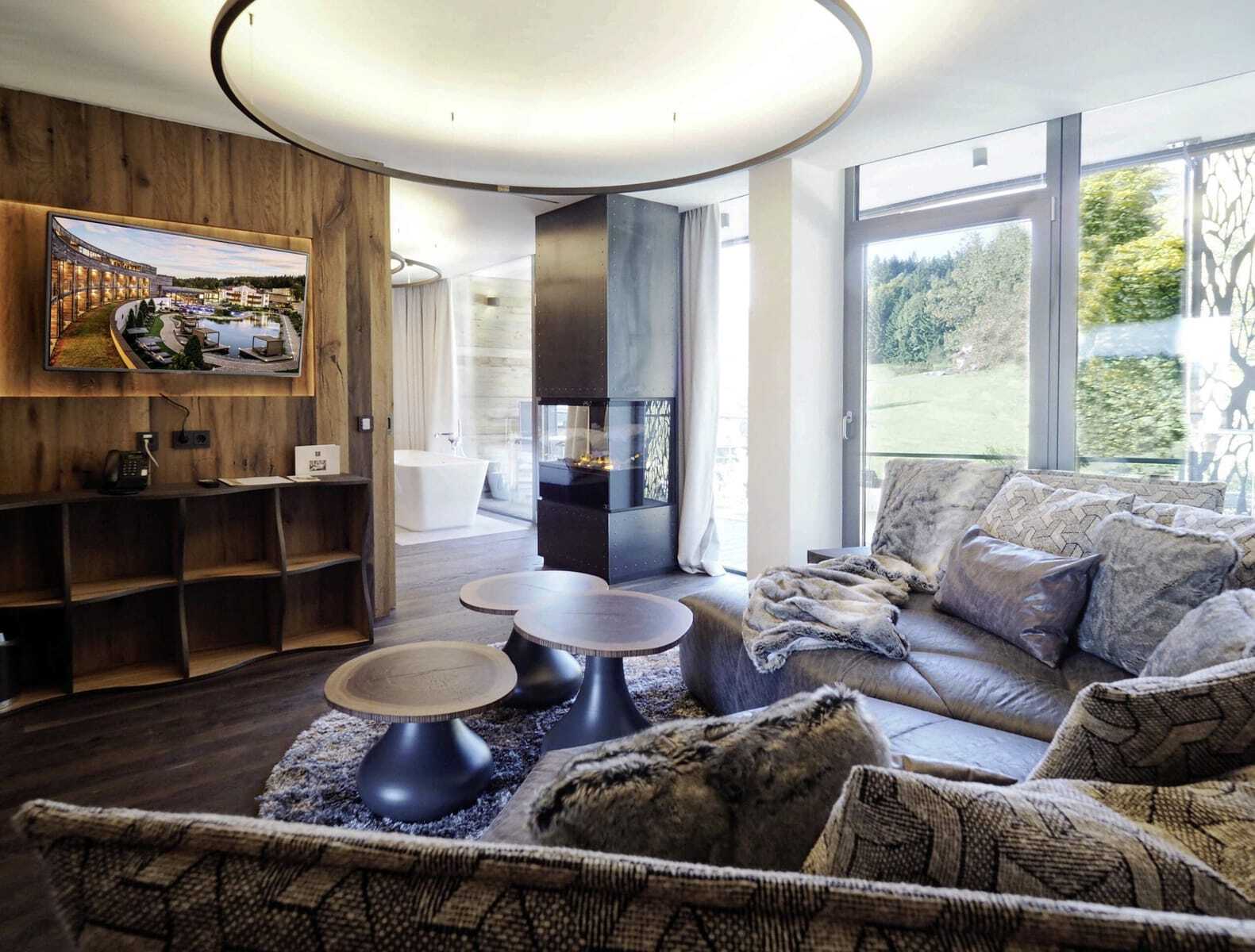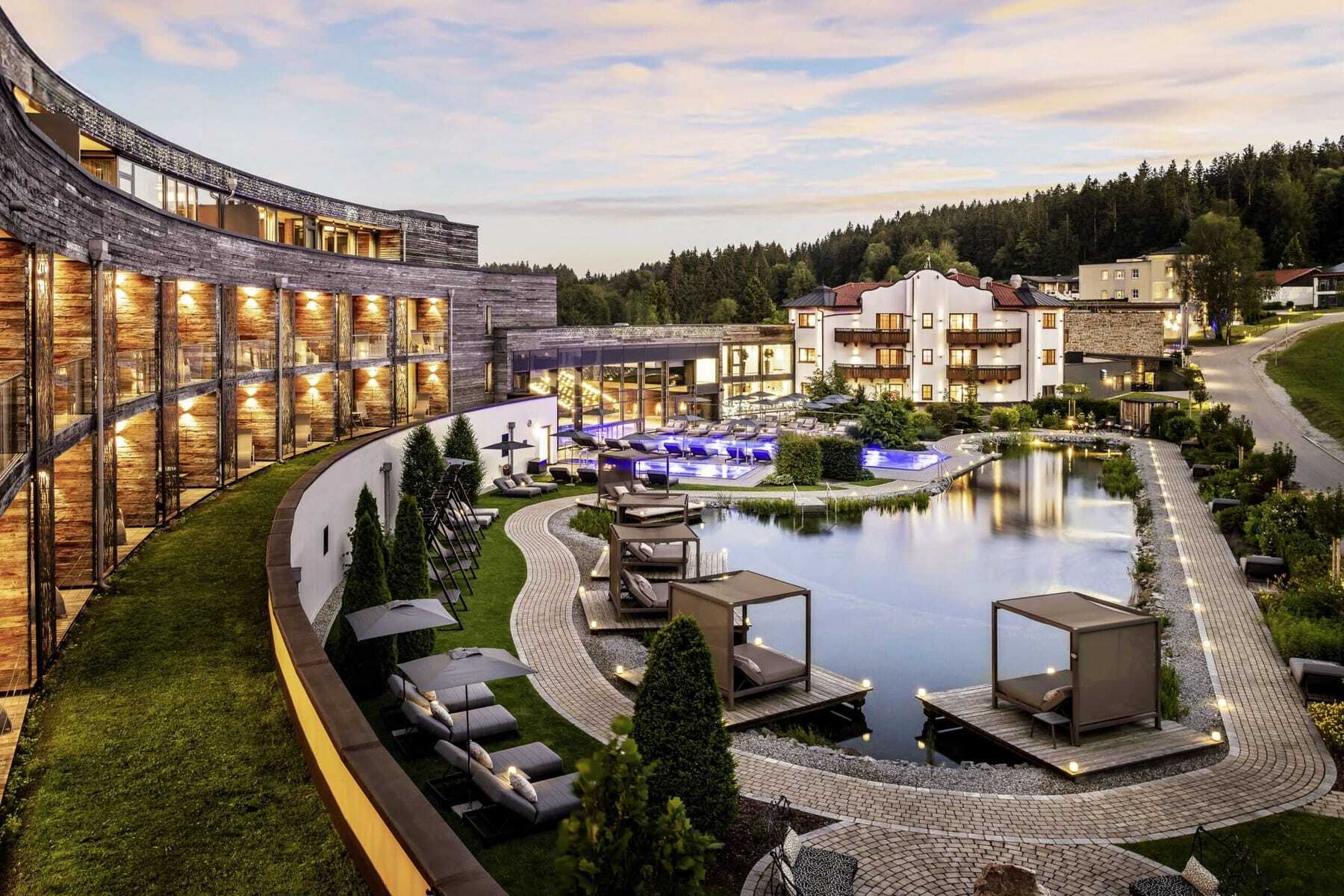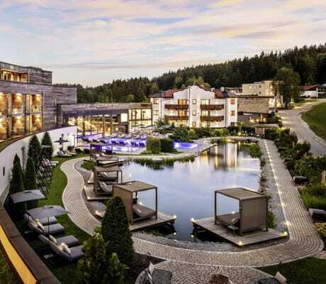 Aber es gibt noch mehr, mit dem Familie Reischl und ihr Resort in Wegscheid heraussticht: zum Beispiel mit den liebevoll gestylten Zimmern, wie dem »Träumeland«, »Kuschelnest« oder der Sternen-Suite mit großen Bädern, oft freistehender Wanne und ausgewählten Naturmaterialien. Dazu Wellnessvielfalt mit In- und Outdoorpools, Naturbadesee, Saunen und Dampfbäder, Sole-Skypool und dem Chillout-Garten sowie 18 meditativen Ruheräumen.