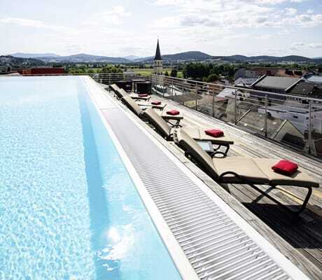 4*S-Wellnesshotel mit Skypool auf der Dachterrasse, 13 individuell gestalteten Behandlungsräumen und zahlreichen Ruhezonen für Erholung auf höchstem Niveau. Weitere Highlights sind das brandneue Fitnessstudio sowie das hauseigene Premium-Kino. Nachhaltigkeit ist hier kein Trend, sondern gelebte Überzeugung – ausgezeichnet mit dem GreenSign-Siegel.