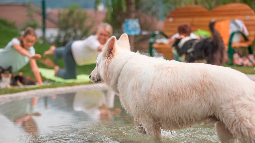 Selbst beim Yoga am Donnerstag dürfen die Vierbeiner dabei sein, es gibt Barf-Specials vom Chef de Cuisine, eine Hunde-Aromatouch-Massage und wöchentlich kommt der Hundefotograf. Im Gartenhotel Magdalena tragen zahlreiche Wau-Momente dazu bei, das Vier-Sterne-Hotel im Zillertal zu einem Wohlfühlort für Mensch und Tier machen.