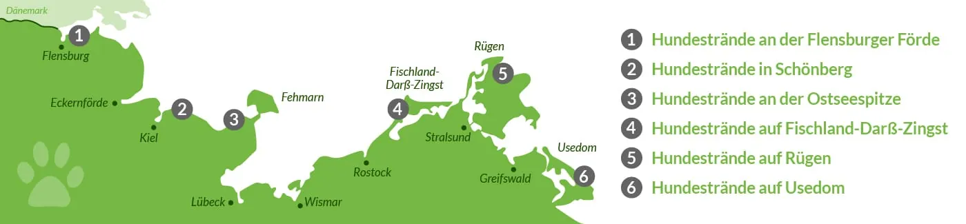 An der Ostseeküste finden Gäste einen insgesamt rund acht Kilometer langen weißen und traumhaft schönen Sandstrand, in dem es auch drei extra Bereiche für Hunde gibt. Der Besuch der Hundestrände ist in der Hauptsaison teilweise kurabgabepflichtig, es gilt keine Leinenpflicht. In allen anderen Strandbereichen des Ostseebads sowie am Deich müssen die Hunde hingegen an der Leine geführt werden.