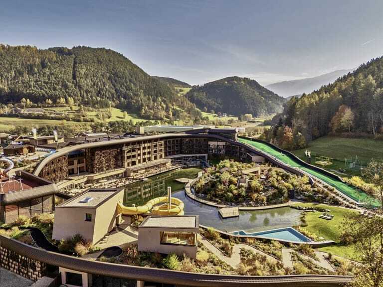Das Resort vereint alpinen Luxus auf Fünf-Sterne-Niveau mit herzlicher Gastlichkeit, 4.400 qm großer Wellnessoase und spektakulärem Panoramablick auf Meran.