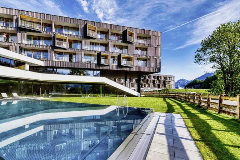 Im familiengeführten 4*S-Hotel in Alpbach, dem schönsten Dorf Österreichs, wurde der Familienbereich gekonnt vom Adults only-Spa getrennt. Nach Süden bietet sich der unverbaute Blick über Blumenwiesen bis zu den Bergen. Der perfekte Ausgangspunkt für Wander-, Bike- und Skiurlaub.