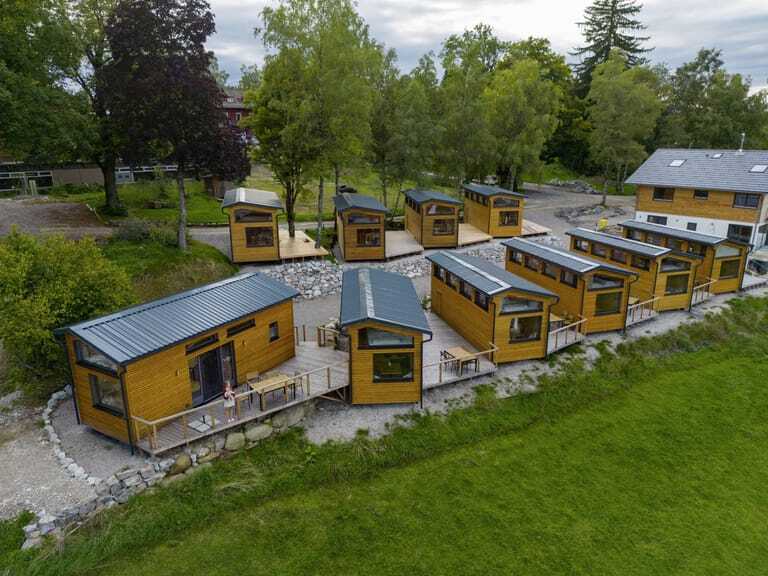 Die Tiny Houses des SEINZ Wisdom Resorts schaffen Raum für Ruhe, Fokus und Naturverbundenheit. Am Rand des weitläufigen Resortgeländes stehen die kompakten Rückzugsorte aus massivem Holz, die den Blick auf die Ammergauer Alpen öffnen und bewusst einfach gestaltet sind – ideal für eine digitale Auszeit.