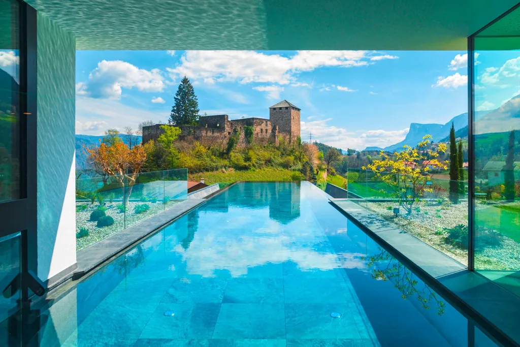 Das aus zwei Gebäuden bestehende Wellnesshotel in Völlan/Südtirol beeindruckt nicht nur mit seiner Lage an der imposanten Mayenburg und mit seinem freistehenden Infinity-Outdoorpool, sondern auch mit einem 30.000 qm großen Waldpark, der zum Durchatmen einlädt. Der perfekte Ausgangspunkt für Wanderer, Biker und Golfer.