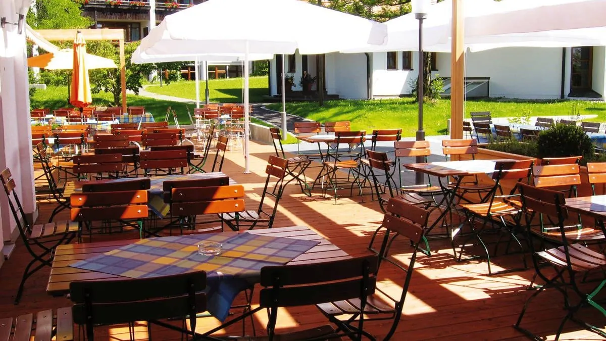 - urige »Q-Alm« mit Biergarten und bayerischen Schmankerln
