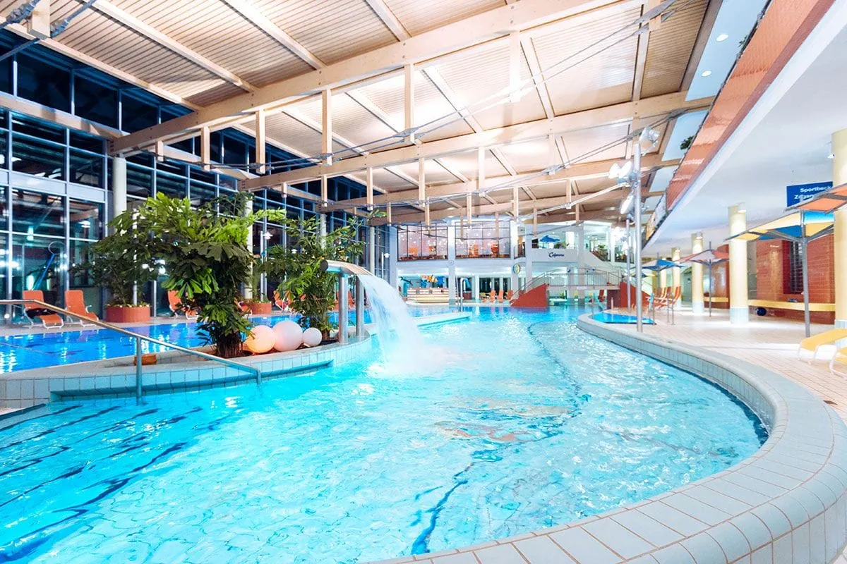 - Sportbad mit 25-Meter-Bahnen, acht Saunen inklusive Kelosauna mit Kamin und Japansauna