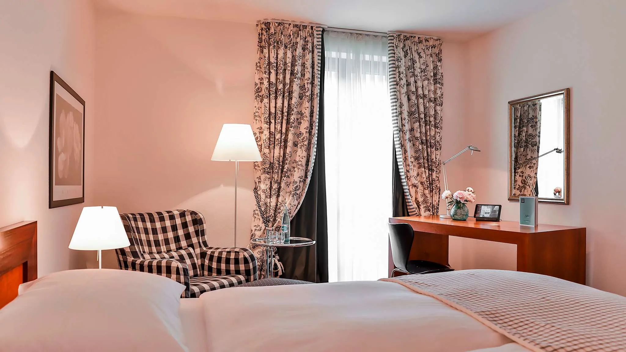 - Logis: 18 Einzelzimmer, 46 Doppelzimmer Komfort, 71 Doppelzimmer Superior, 6 Junior-Suiten, 1 Suite